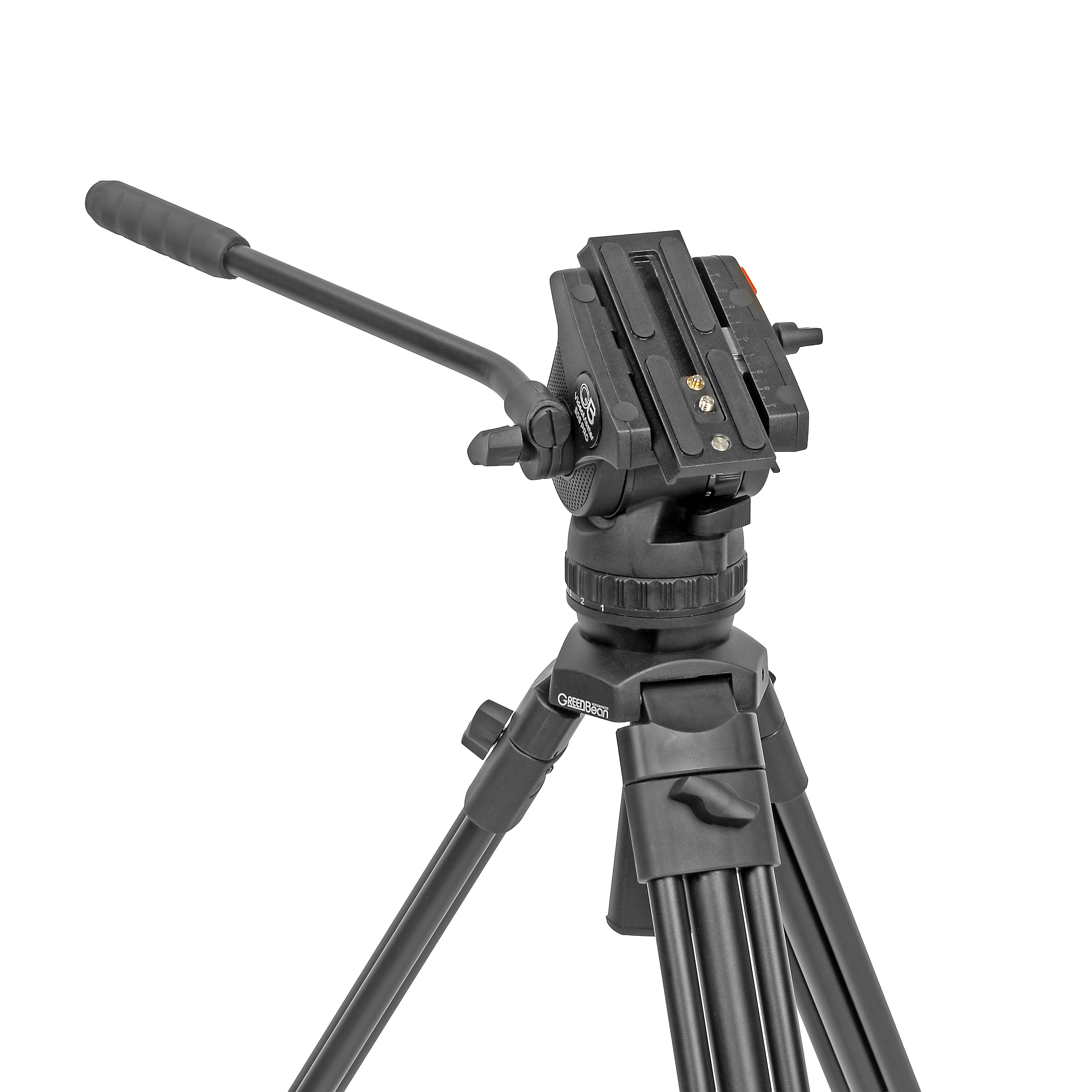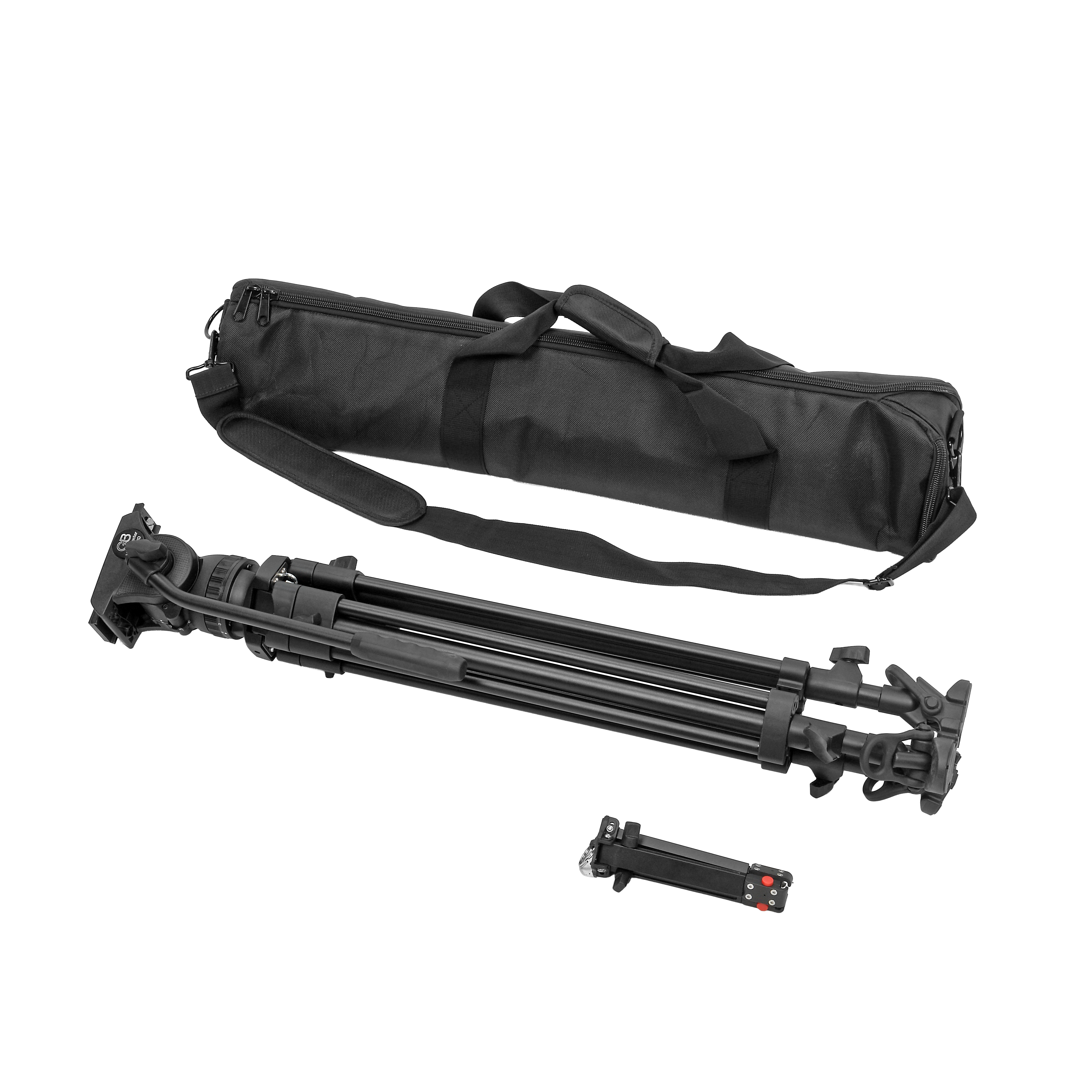 Головка закрепляется на штативной шаровой базе Ø75 мм, что позволяет быстро установить камеру и настроить ее горизонтальное положение для съемки. Жесткий штатив с прочными алюминиевыми сдвоенными ногами и телескопической средней растяжкой обеспечивает оператору необходимую мобильность и уверенность в качестве отснятого материала. Комплект штатива дополняет сумка для переноски.