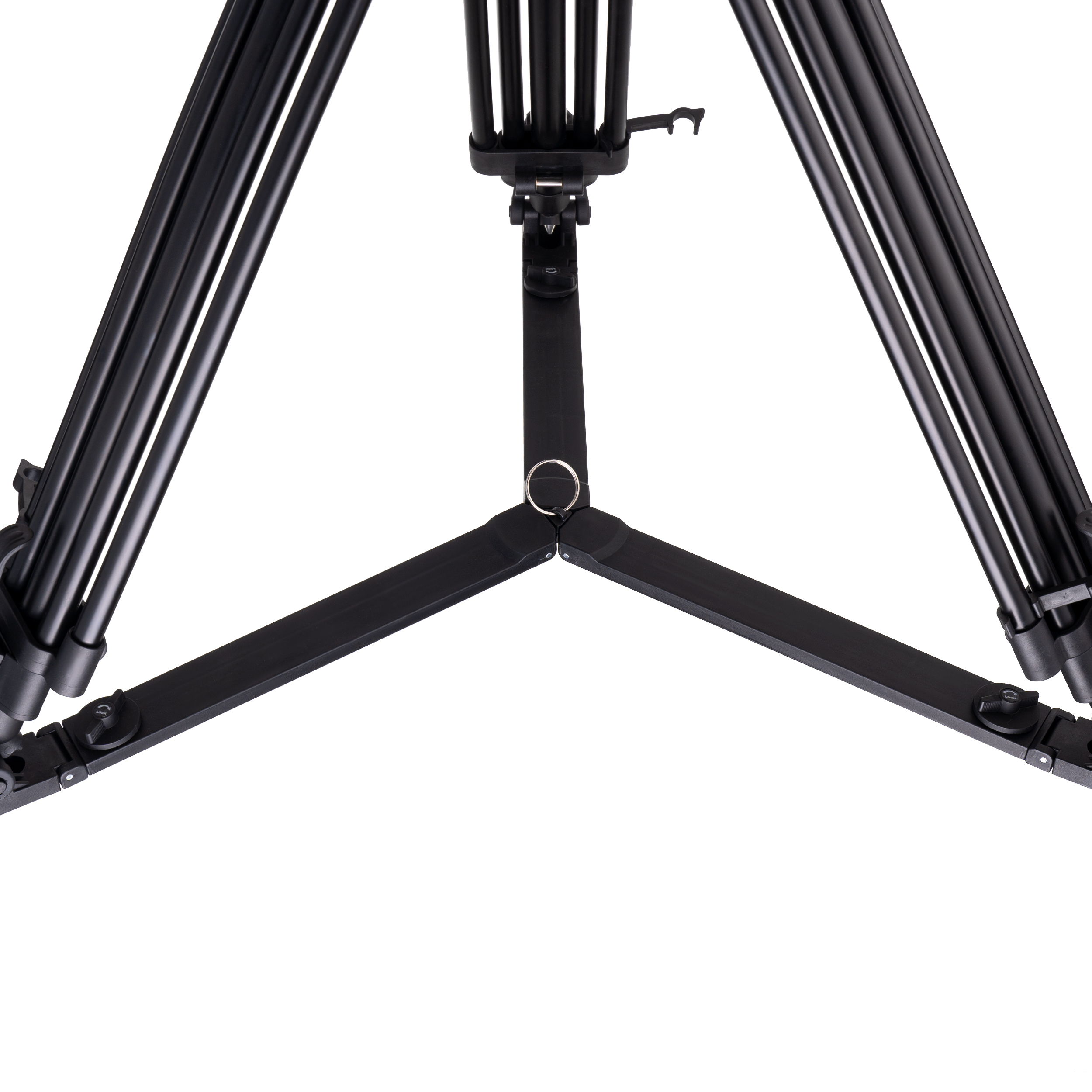 Алюминиевая тренога с 3-секционным выдвижением, раздвижной нижней растяжкой и 100 мм чашей-полусферой обеспечивает высокую устойчивость штатива во всем диапазоне рабочих высот установки камеры от 470 мм до 1650 мм.