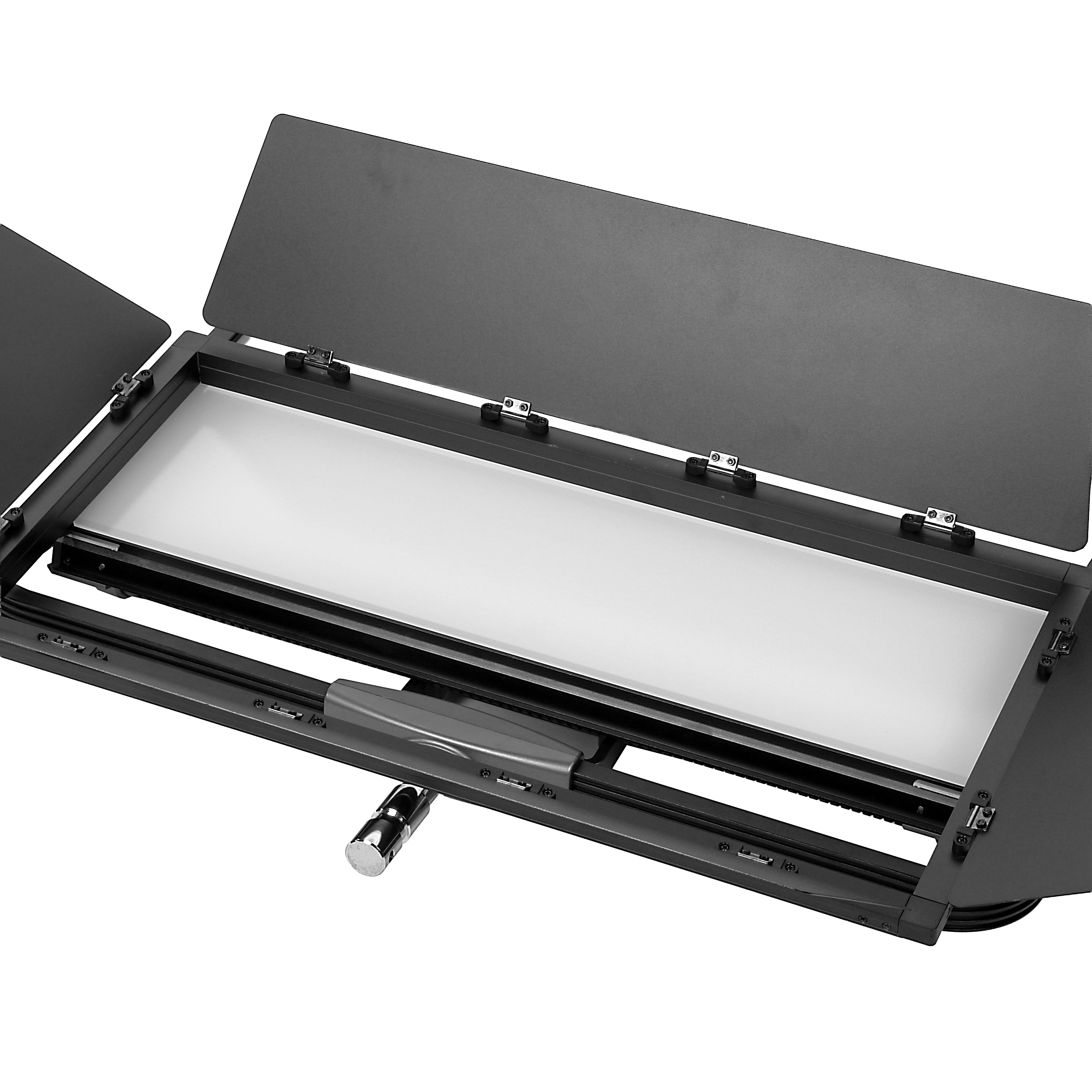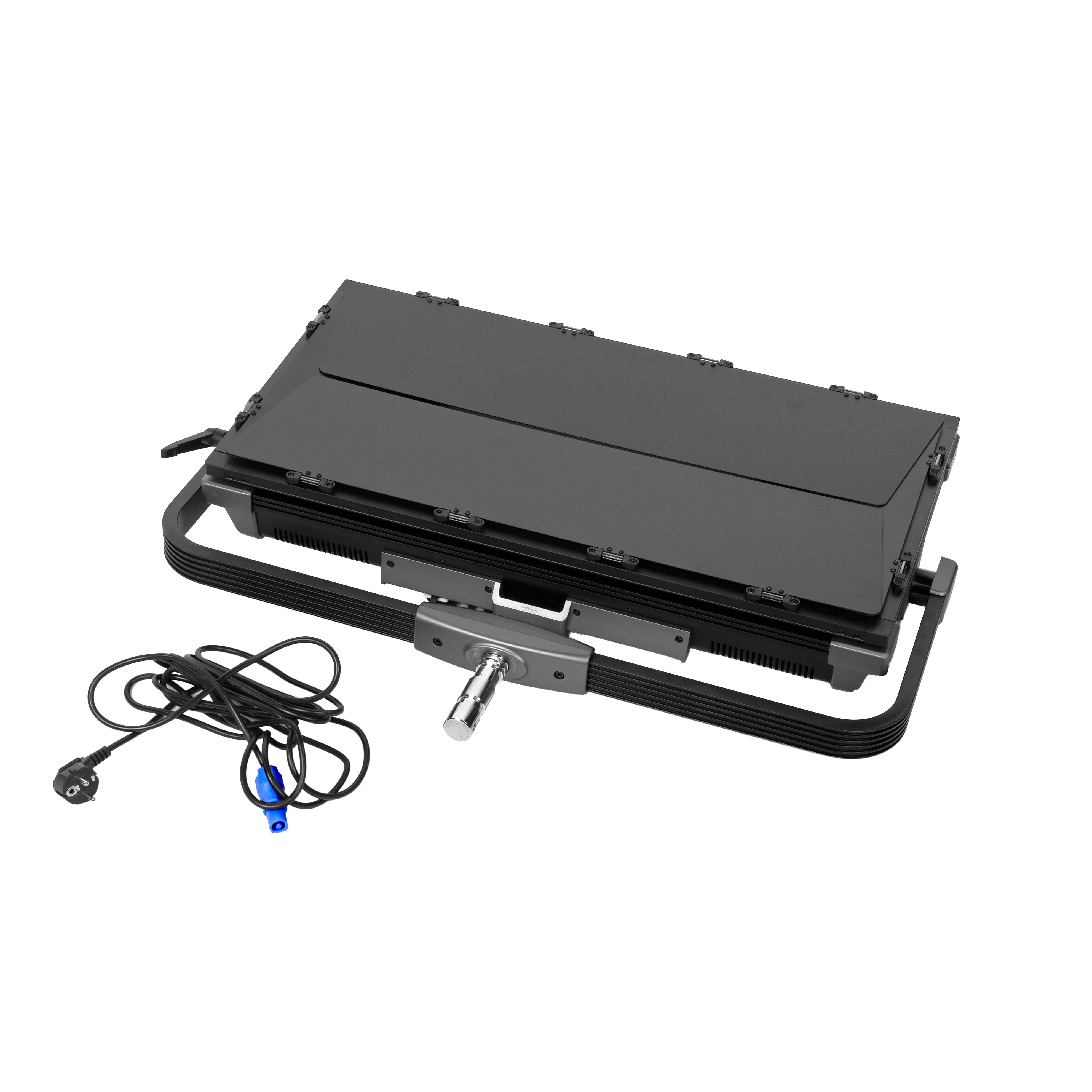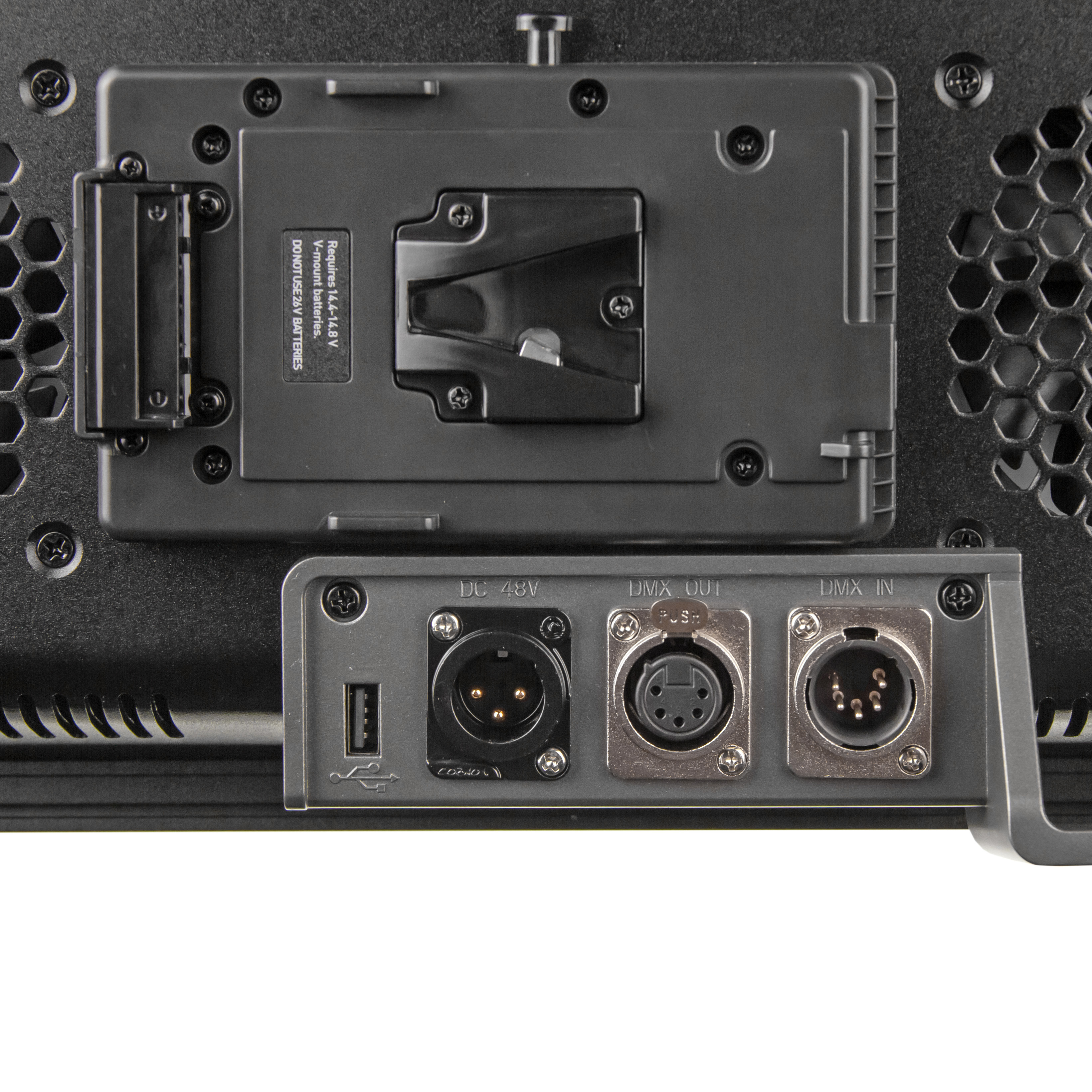 Универсальное питание от сети переменного тока или от аккумуляторных батарей V-mount, в сочетании с небольшой потребляемой светодиодами мощностью даёт возможность использовать DayLight PRO не только в условиях студии, но и вне помещения, на выездных съёмках.