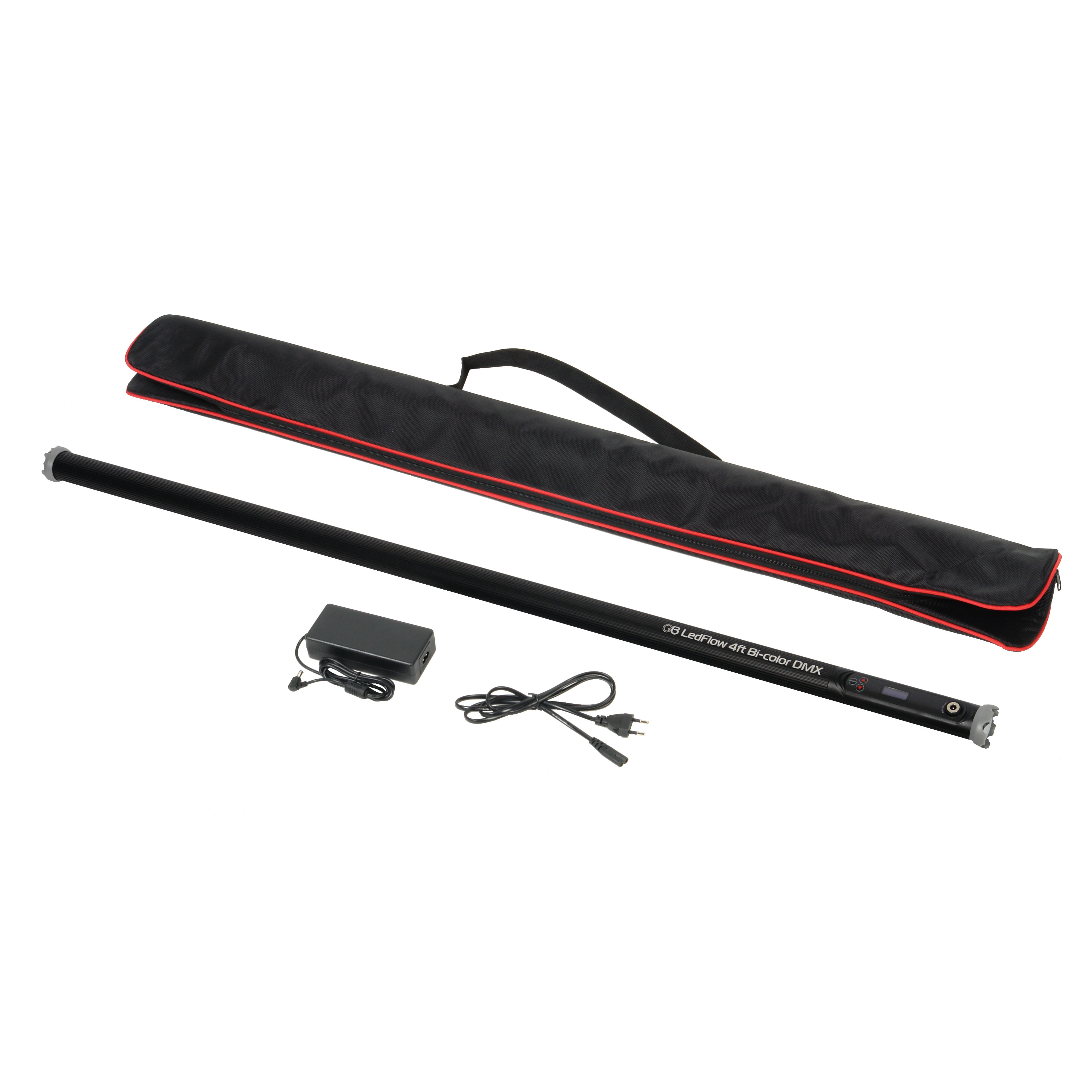 Осветитель GreenBean LedFlow 4ft RGB (BP) — легкая светодиодная труба в алюминиевом корпусе мощностью 60 Вт, дающая яркий световой поток освещенностью 900лк (на расстоянии 1 метр) в режиме Bi-color (биколор) или освещение в полном цветовом спектре RGB, а также создающая различные цветосветовые эффекты для видео-, кино- и фотосъемки.