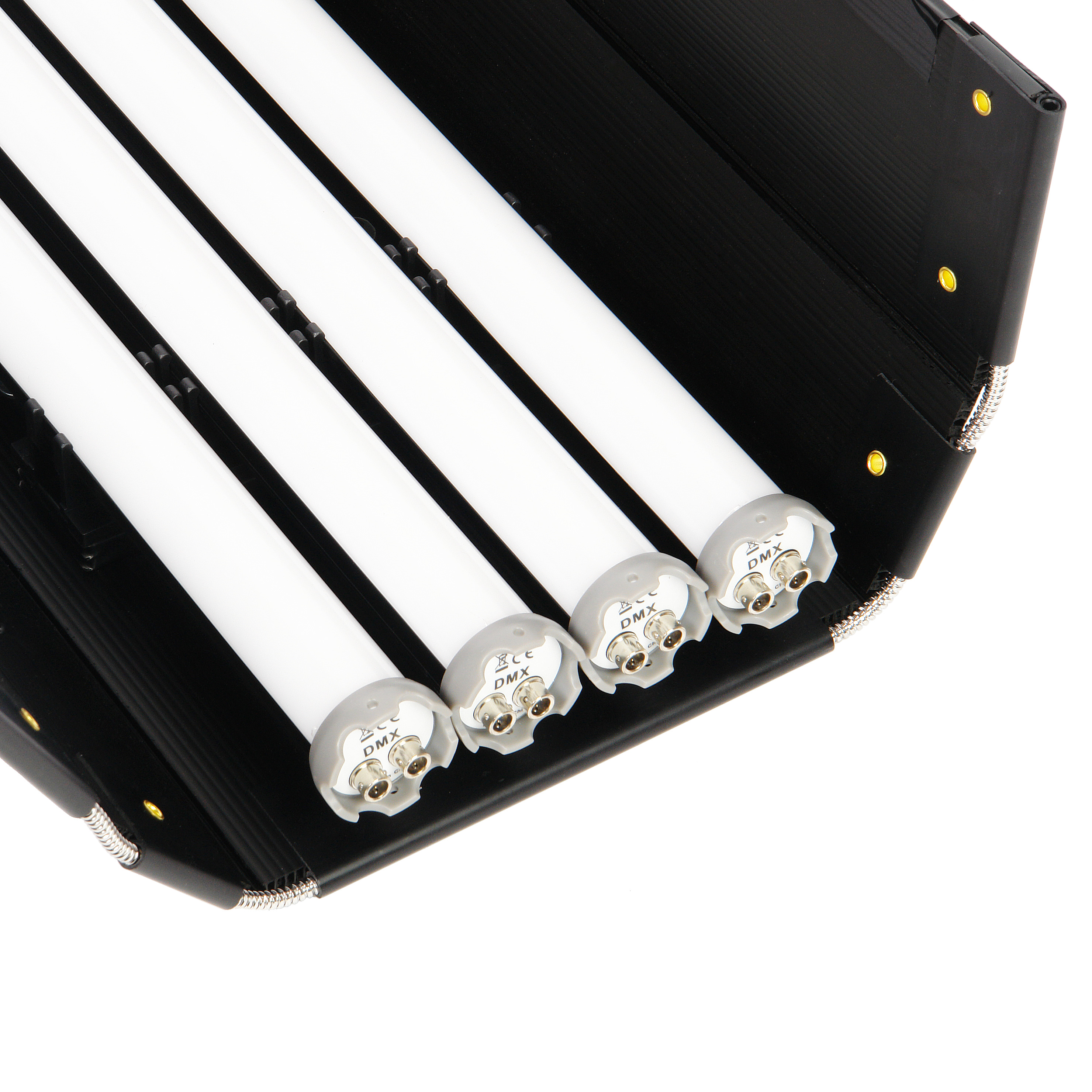 Осветитель можно использовать при производстве игрового кино, рекламных видеороликов и музыкальных клипов. Легкий и мобильный осветитель не займет много места в студии, а при необходимости каждая светодиодная труба вынимается из каркаса и используется отдельно.