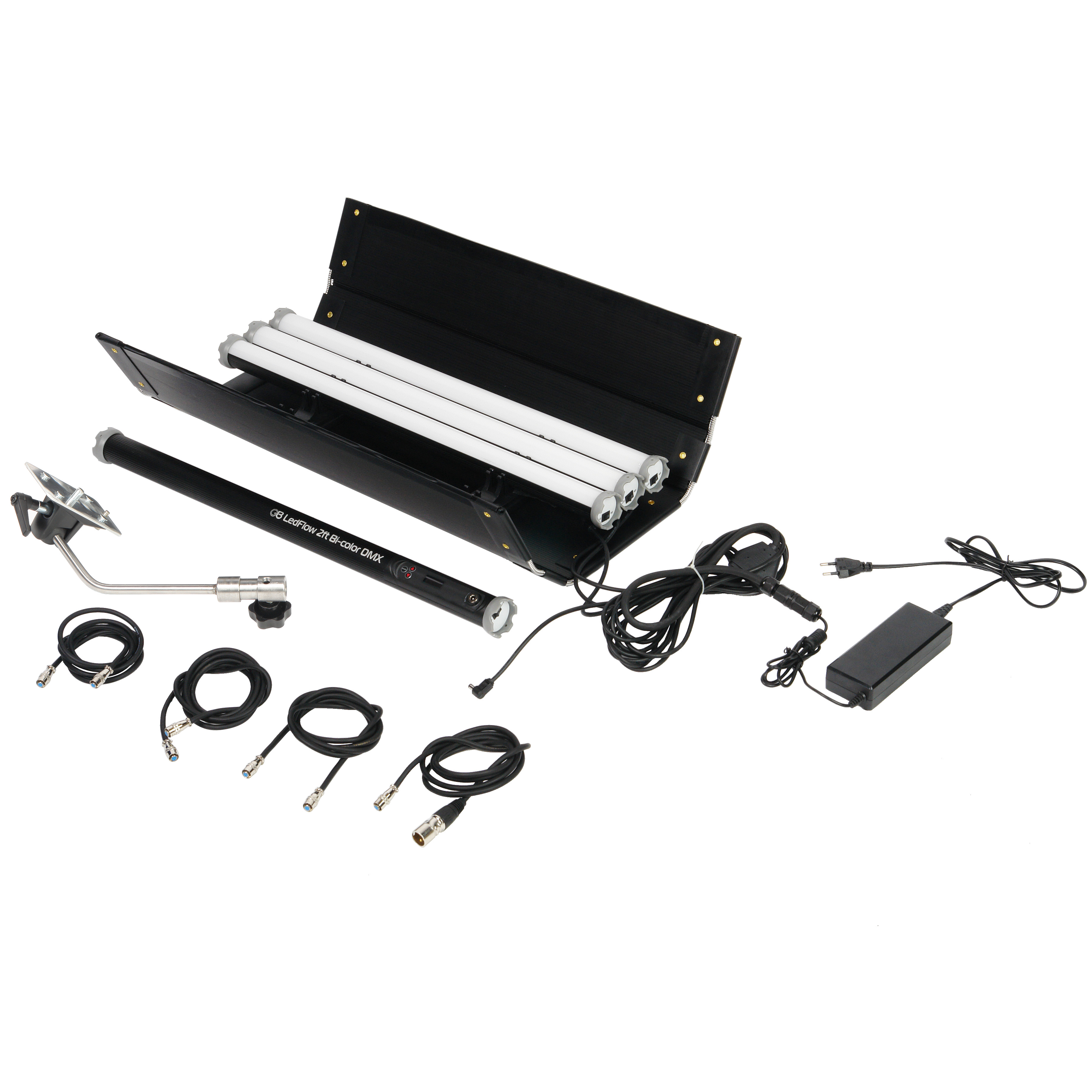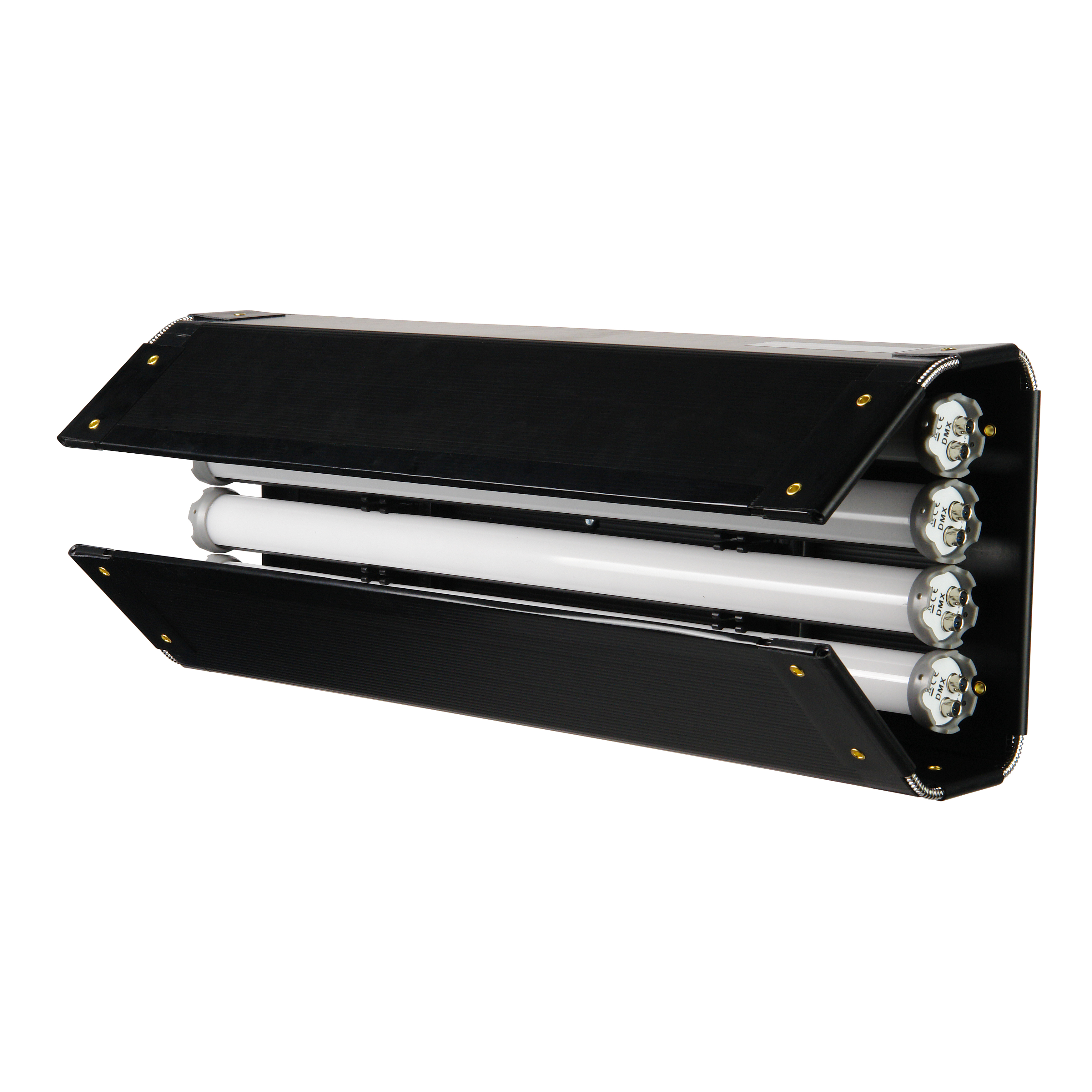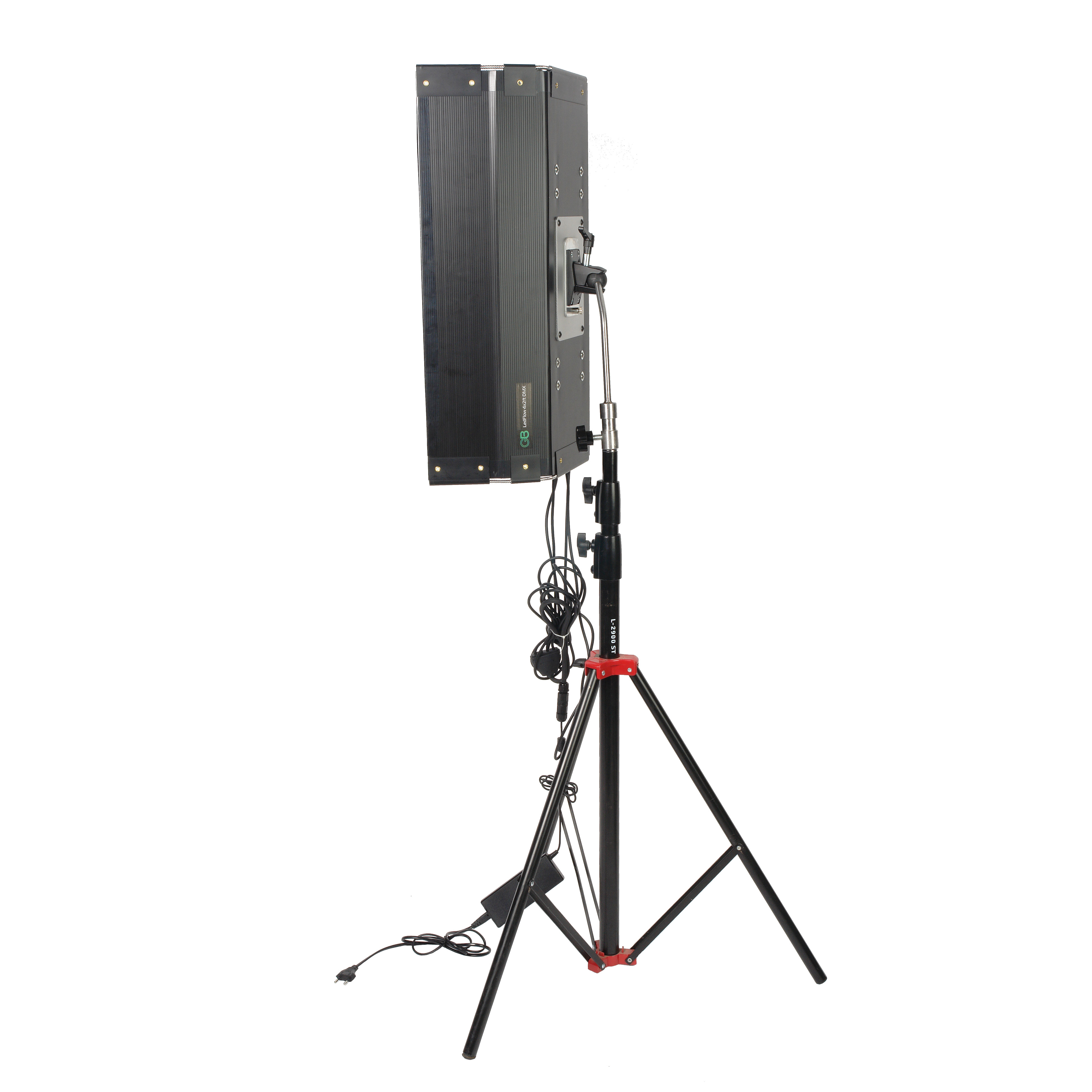Осветитель светодиодный GreenBean LedFlow 4х2ft DMX – источник направленного света мощностью 80 Вт в режиме Bi-color (теплого и холодного белого света) для видео-, кино- и фотосъемки. Комплектуется 4 осветителями GreenBean LedFlow 2ft Bi-color DMX, установленными в легкий каркас с регулируемыми шторками. Осветители могут настраиваться с пульта управления по протоколу DMX-512, выполняя различные световые сценарии, например, в телестудии или на сцене.