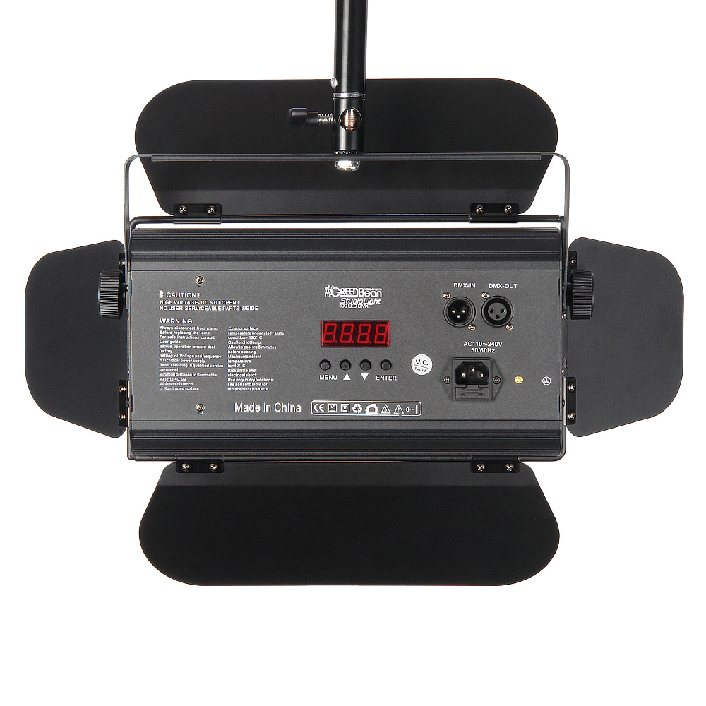 Осветитель GreenBean StudioLight 100 LED DMX – светодиодная панель с мощностью 100 Вт и цветовой температурой 5200±200 K, которая может настраиваться с пульта управления по протоколу DMX-512. Светодиодный осветитель со съемными металлическими шторками и рассеивающим фильтром предназначен для использования как мощный источник постоянного света (а также в режиме "стробоскоп") на съемочной площадке или сцене.