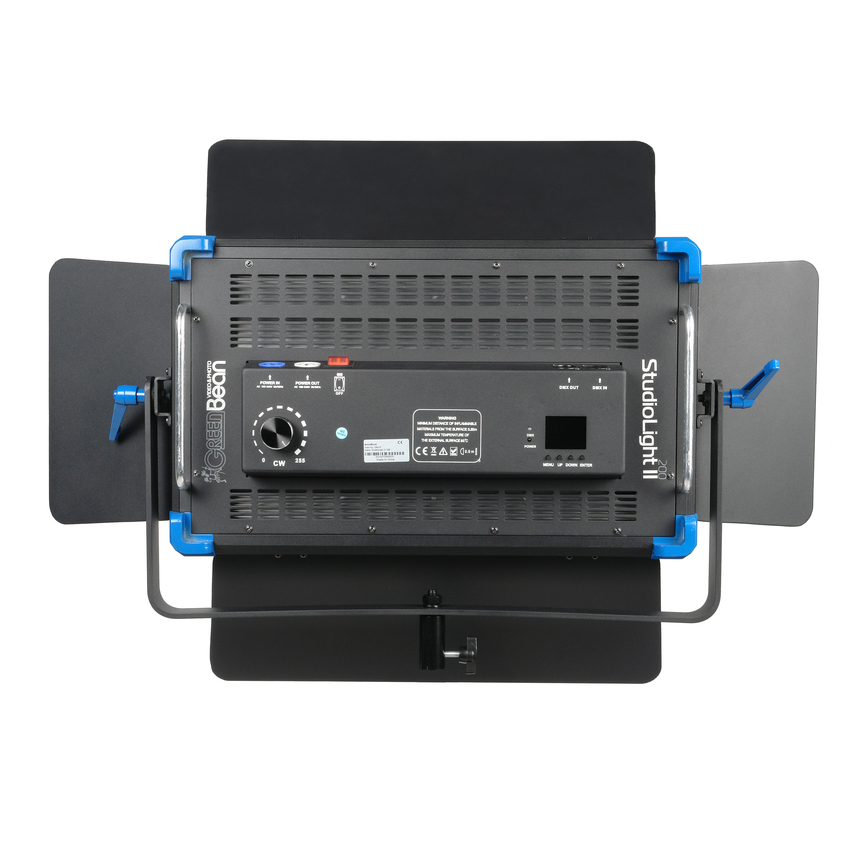 Новая светодиодная панель GreenBean StudioLight II 200 выдает яркий поток белого «дневного» света с максимальной мощностью 200 Вт и постоянной цветовой температурой на любом установленном уровне мощности. Осветитель подойдет для равномерного освещения съемочного пространства в телестудии, видеостудии, при записи блогов, в кинопроизводстве и многого другого. Прибор управляется при помощи панели управления на тыльной стороне устройства, а также с пульта DMX протоколу DMX-512. Комплектные металлические шторки и встроенный рассеивающий фильтр помогают создать необходимое управляемое освещение. Осветитель может служить для создания освещения любого типа – заполняющего, рисующего, фонового и т.д.