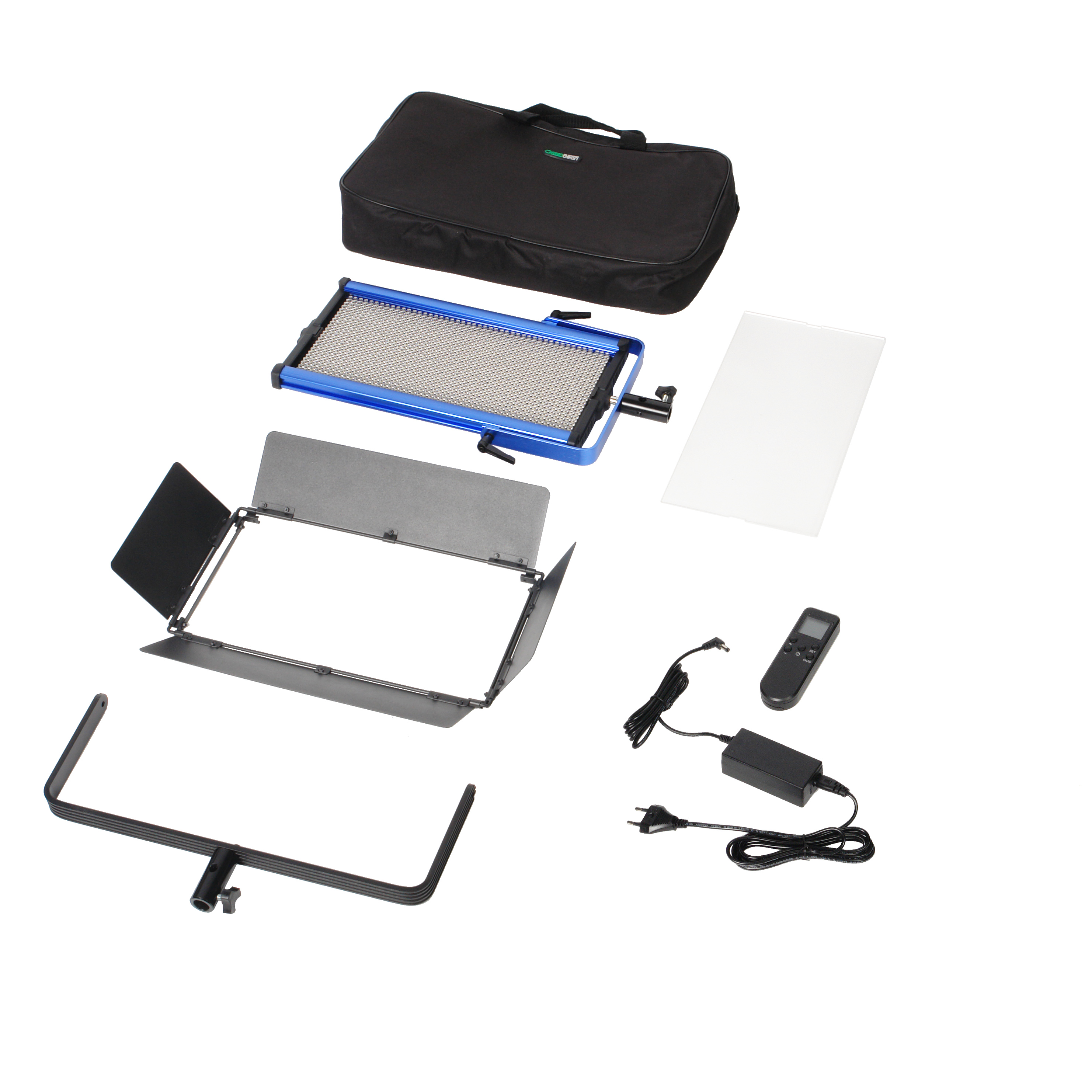 Отличные технические характеристики – световой поток 4300 лм, плавное регулирование цветовой температуры в расширенном диапазоне 3200–5600 К и яркости от 10 до 100%, точную цветопередачу (CRI > 97) – обеспечивают 1152 сверхъярких светодиода. Каждый светодиод закрыт рассеивающей линзой, что обеспечивает однородность светового потока. В комплект входит рассеивающий матовый фильтр. На панели фильтр удерживают два упора, утапливающиеся в корпус.