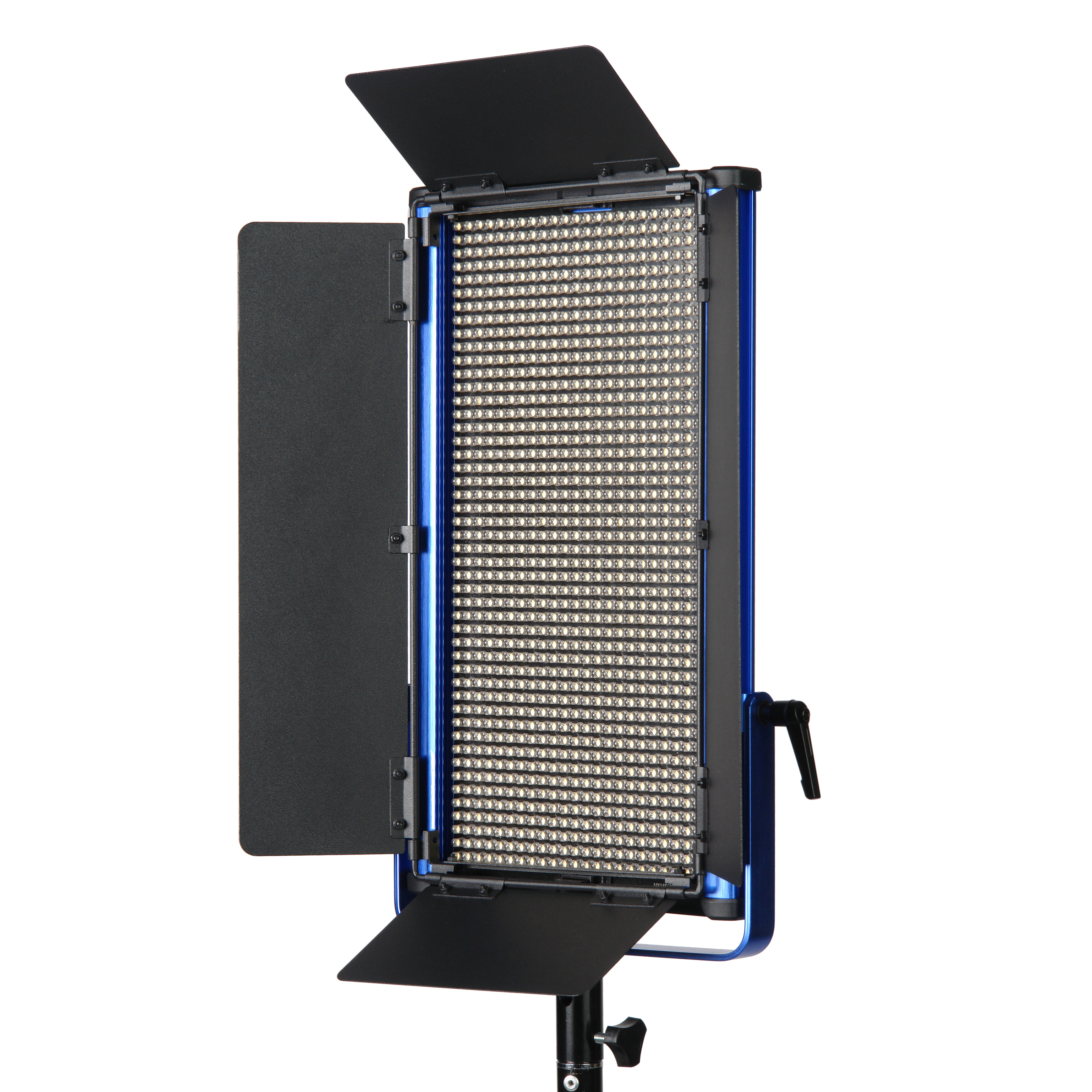 Прочность конструкции обеспечивает корпус из алюминиевого сплава. Благодаря современному дизайну легкие синие панели не затеряются среди другого оборудования на площадке. С помощью надежного кронштейна-лиры, который можно перемещать вдоль корпуса, осветитель устанавливается на стойки, краны, подвесные системы с посадочным местом 5/8”. В комплект входят съемные металлические шторки со стальными крепежными элементами.
