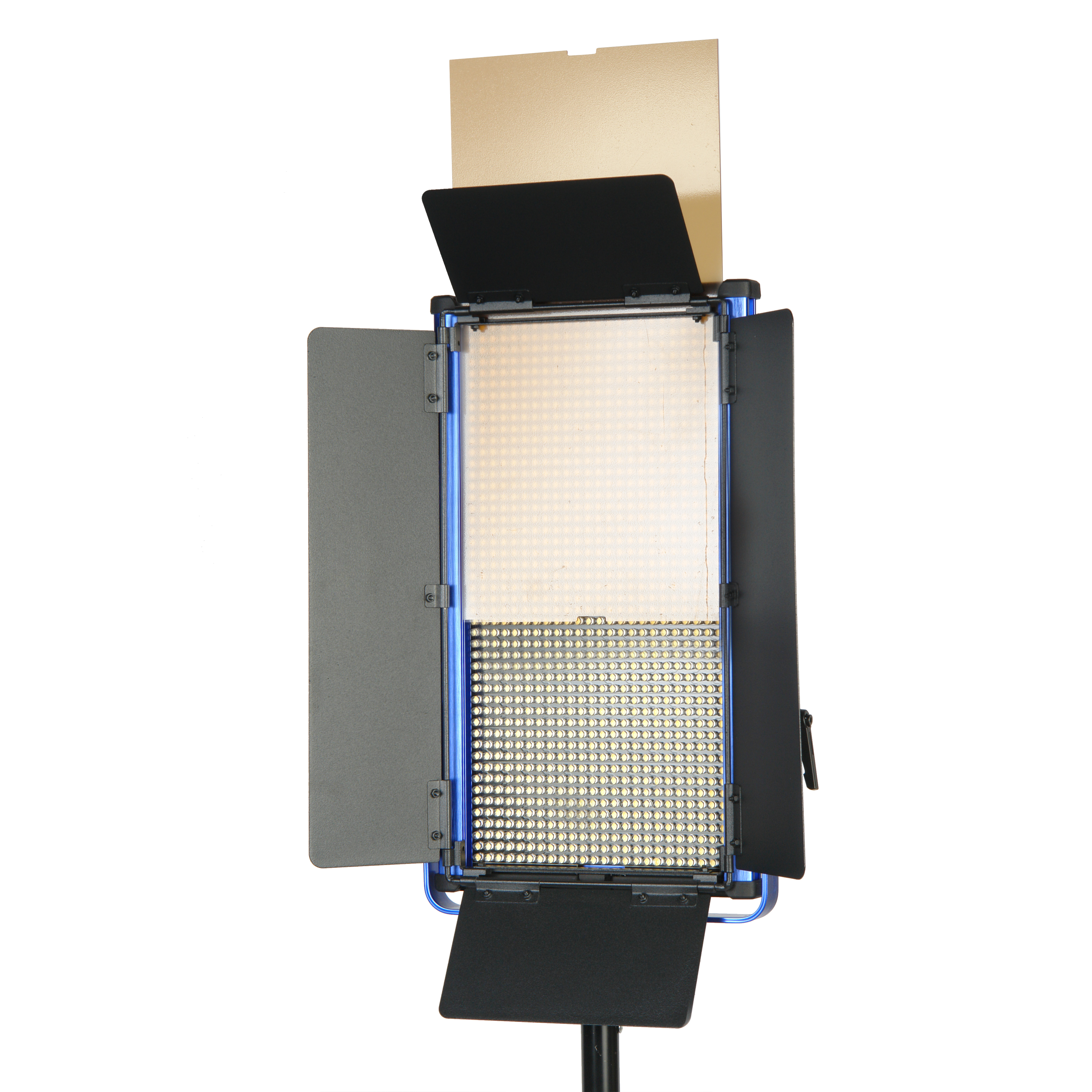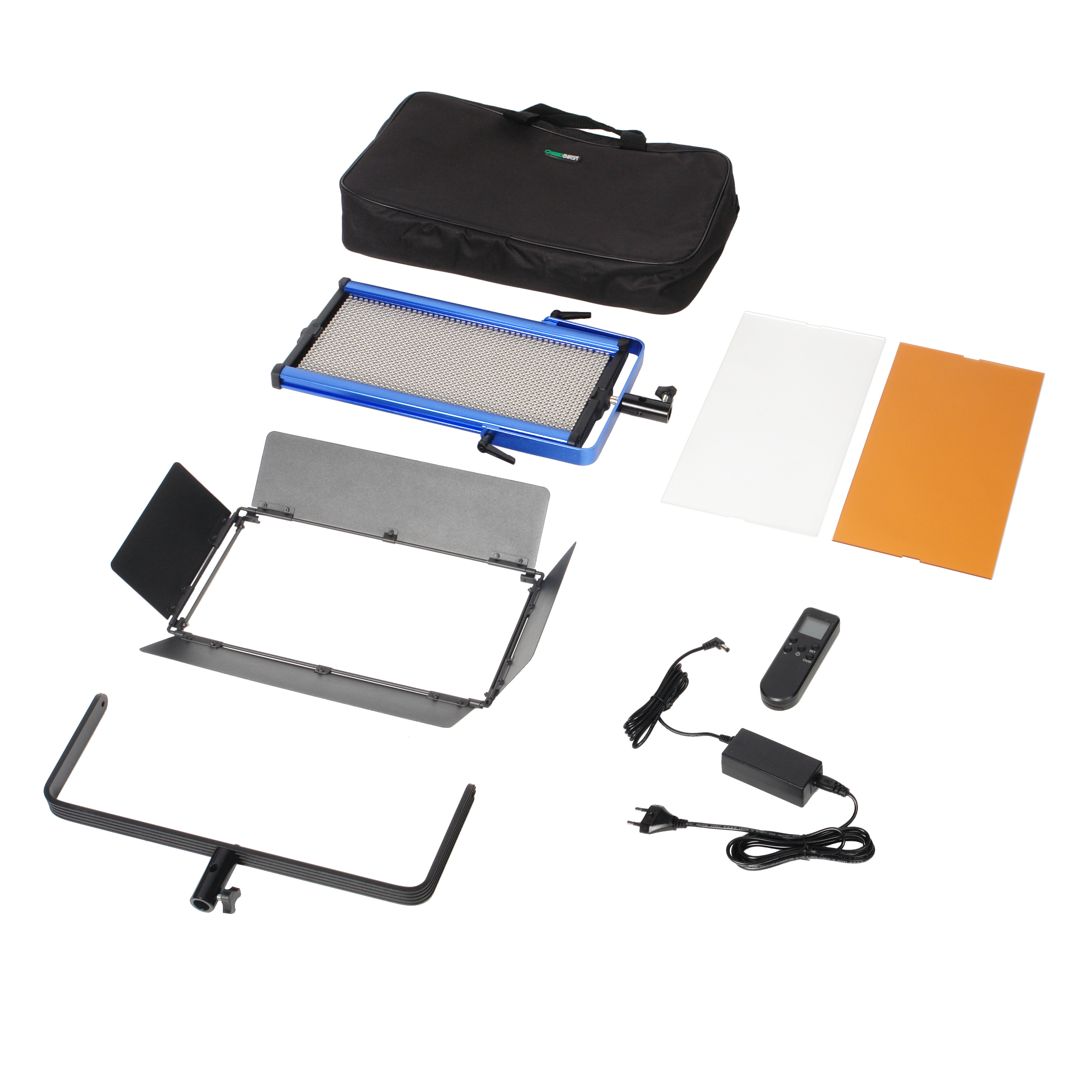 Отличные технические характеристики – световой поток 8500 лм, плавное регулирование яркости от 10 до 100%, точную цветопередачу (CRI > 97) – обеспечивают 1152 сверхъярких светодиода. Каждый светодиод закрыт рассеивающей линзой, что обеспечивает однородность светового потока. В комплект входят 2 съемных фильтра – матовый рассеивающий и оранжевый конверсионный. На панели фильтр удерживают два упора, утапливающиеся в корпус.