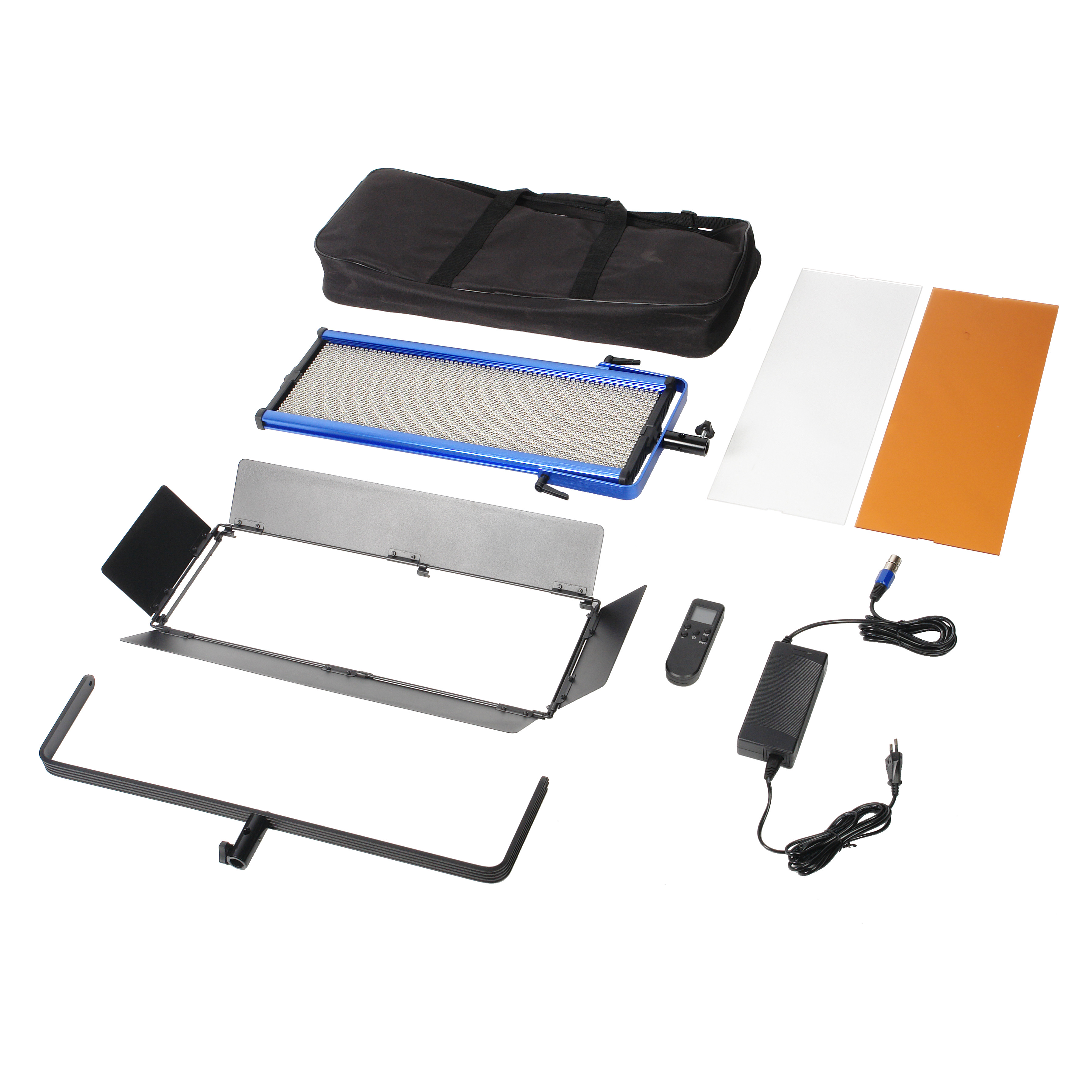 Отличные технические характеристики – световой поток 11200 лм, плавное регулирование яркости от 10 до 100%, точную цветопередачу (CRI > 97) – обеспечивают 1728 сверхъярких светодиодов. Каждый светодиод закрыт рассеивающей линзой, что обеспечивает однородность светового потока. В комплект входят 2 съемных фильтра – полупрозрачный рассеивающий и оранжевый конверсионный. На панели фильтр удерживают два упора, утапливающиеся в корпус.