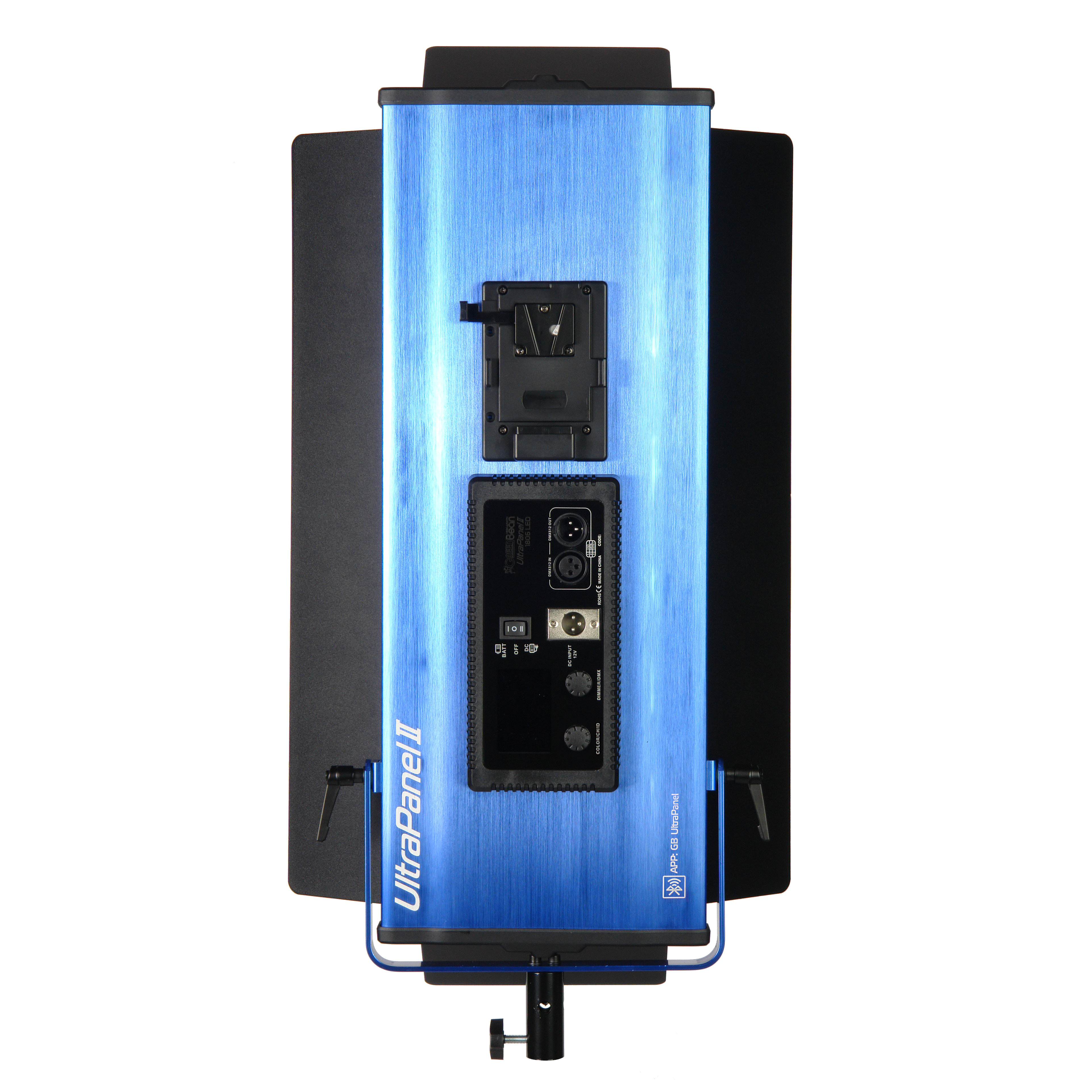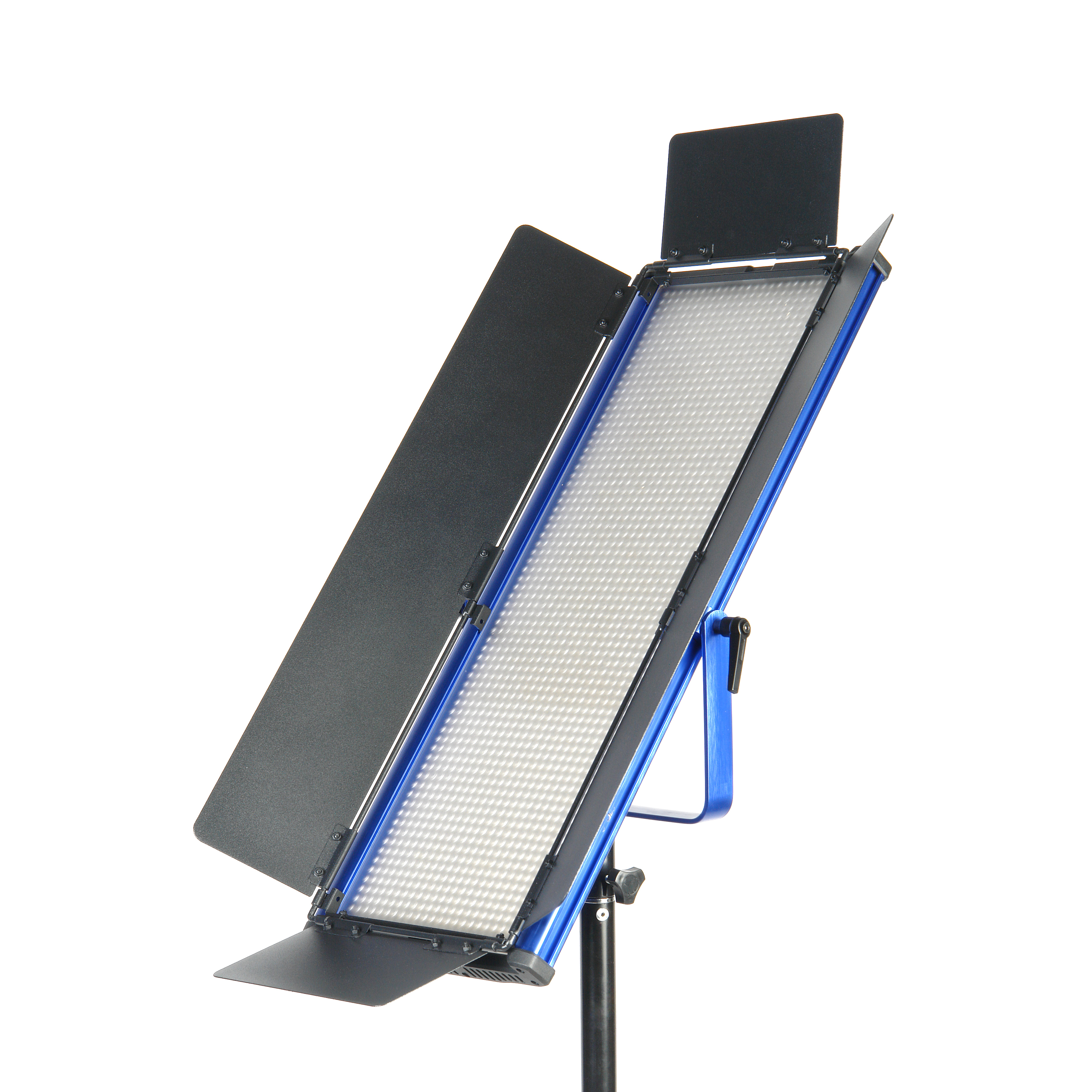 Прочность конструкции обеспечивает корпус из алюминиевого сплава. Благодаря современному дизайну легкие синие панели не затеряются среди другого оборудования на площадке. С помощью надежного кронштейна-лиры, который можно перемещать вдоль корпуса, осветитель устанавливается на стойки, краны, подвесные системы с посадочным местом 5/8”. В комплект входят съемные металлические шторки со стальными крепежными элементами.