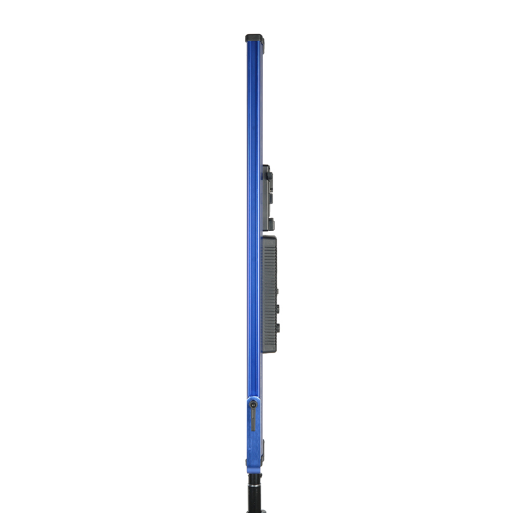 Прочность конструкции обеспечивает корпус из алюминиевого сплава. Благодаря современному дизайну легкие синие панели не затеряются среди другого оборудования на площадке. С помощью надежного кронштейна-лиры, который можно перемещать вдоль корпуса, осветитель устанавливается на стойки, краны, подвесные системы с посадочным местом 5/8”. В комплект входят металлические шторки со стальными крепежными элементами.