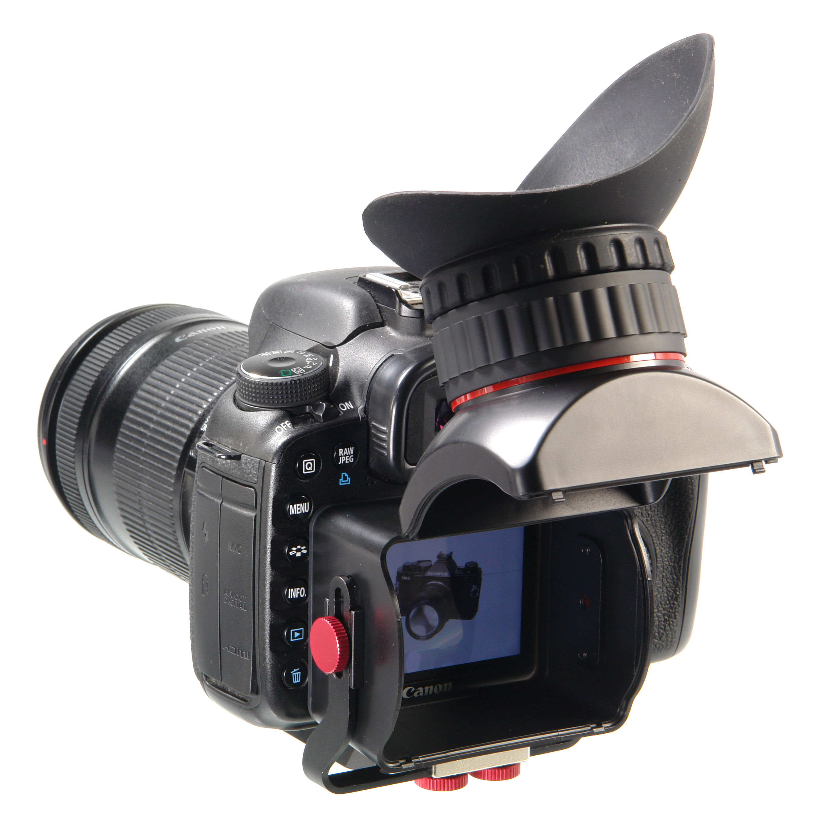 GreenBean VF-3X PRO – предназначен для установки на зеркальные камеры с 3"/3.2" ЖК-экраном. Фокусирующая линза с 3-x кратным увеличением. На окуляре находится кольцо диоптрийной коррекции, это поможет настроить изображение под индивидуальные особенности зрения. Видоискатель соединяется с площадкой, установленной на камере, с помощью магнитного быстросъемного крепления. Рамка, соединяющая видоискатель и площадку, позволяет отрегулировать положение видоискателя в пространстве и имеет возможность движения в направлениях вверх/ вниз / влево / вправо.