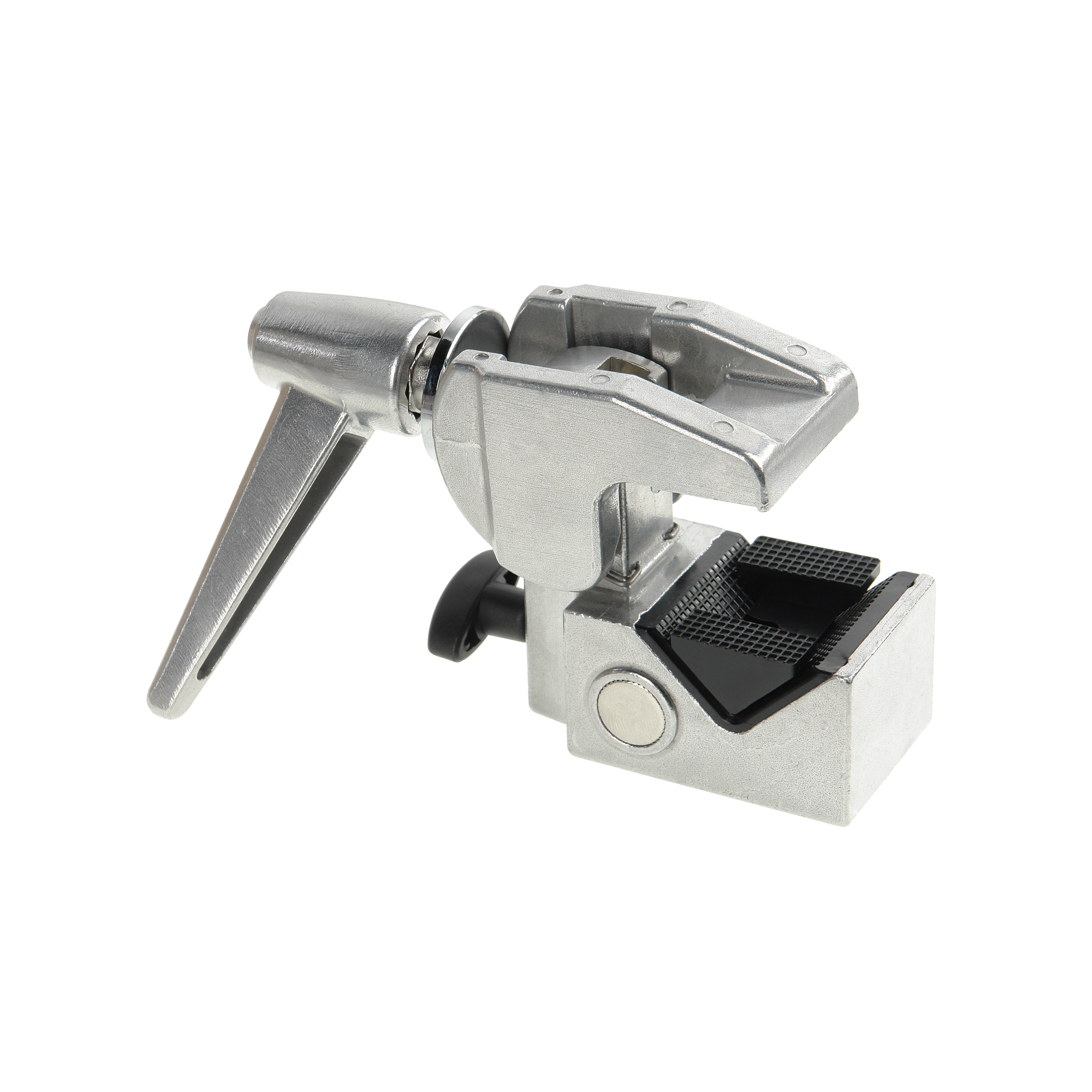 Разжатие и сжатие зажима происходит плавно, при помощи вращения крупной ручки с храповым механизмом. За счет этого, достигается максимально надежное крепление к поверхности, после которого не останутся повреждения или царапины. Храповый механизм ручки дает возможность вращать ее под любым углом, что особенно важно в стесненных студийных условиях.