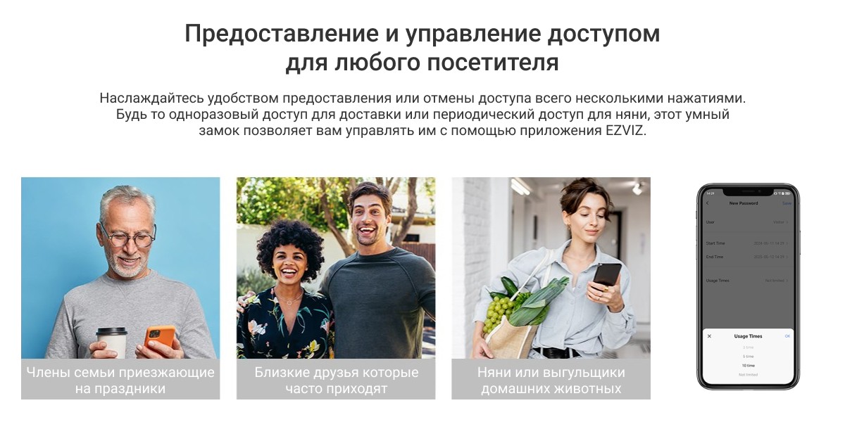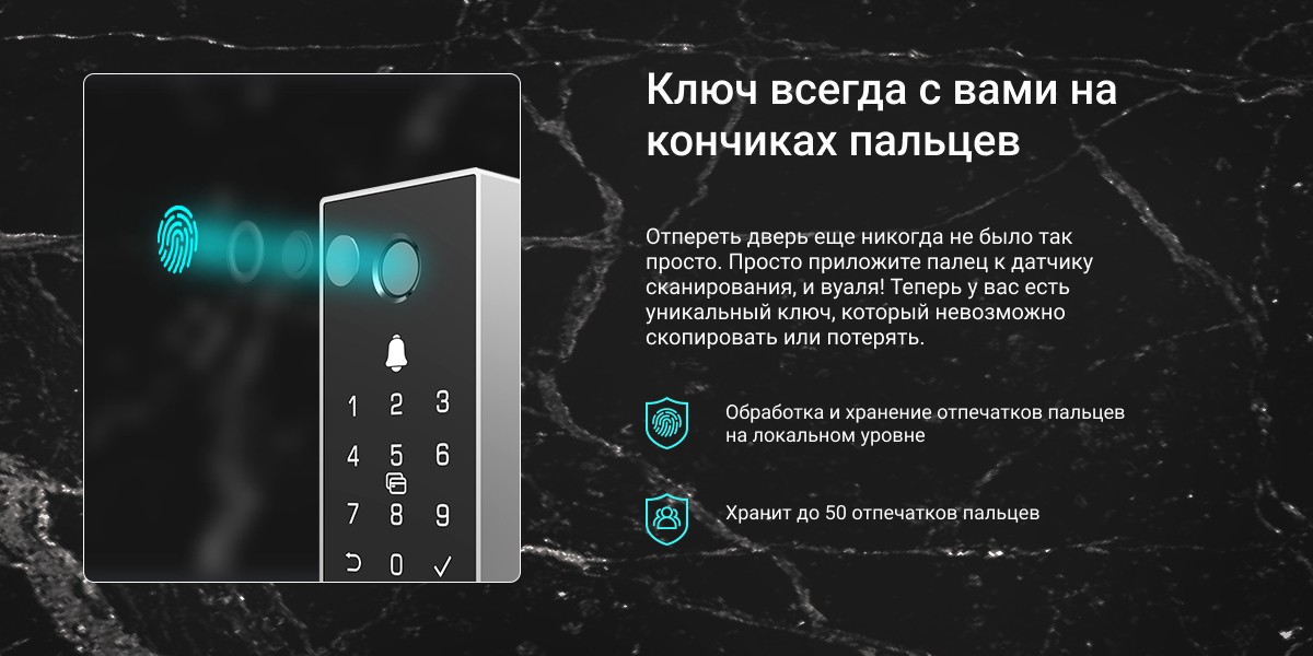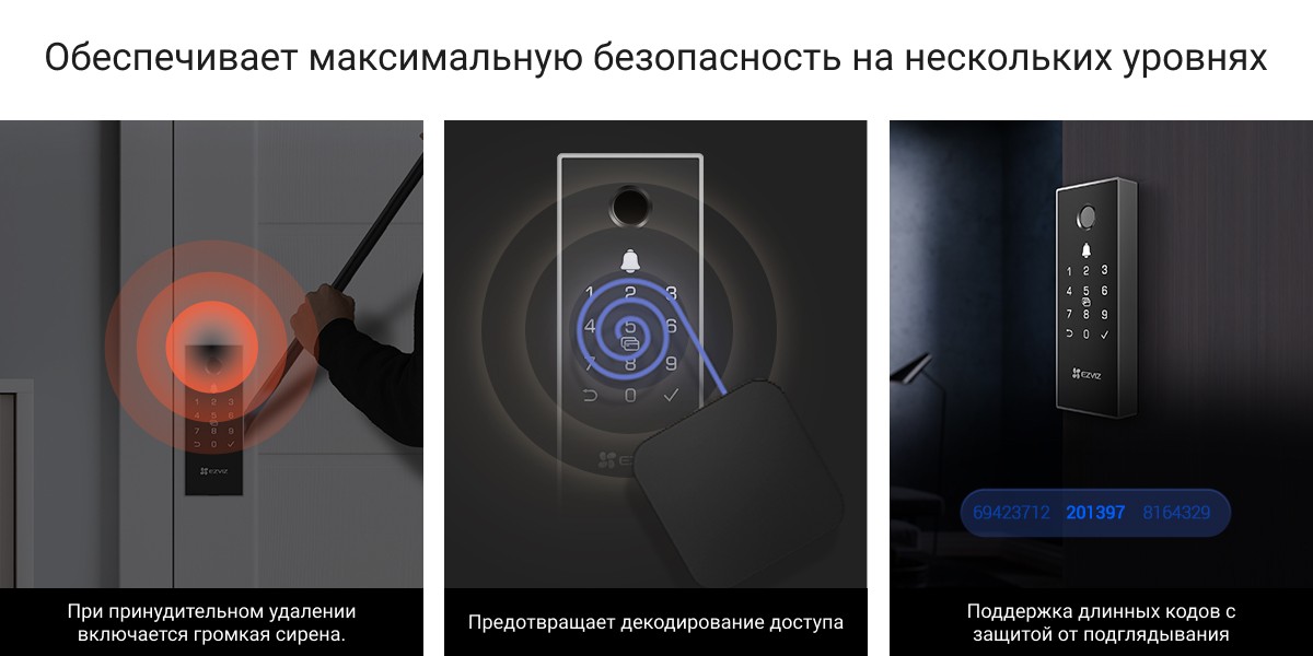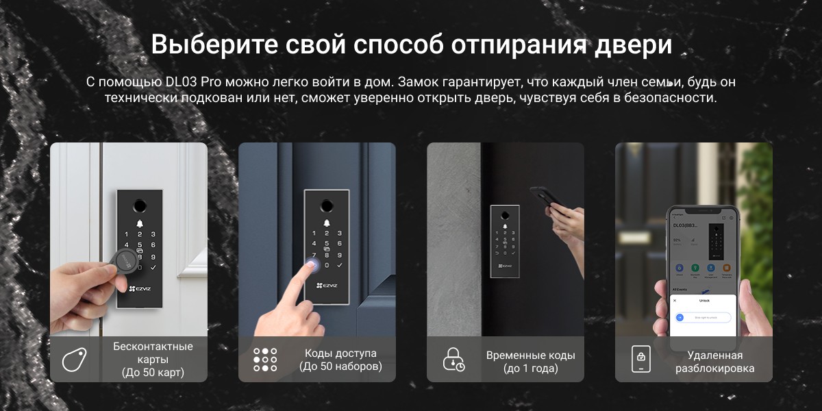 Способы разблокировки - Bluetooth-ключ, Бесконтактная карта, Временные коды, Дистанционная разблокировка, Код доступа, Отпечаток пальца