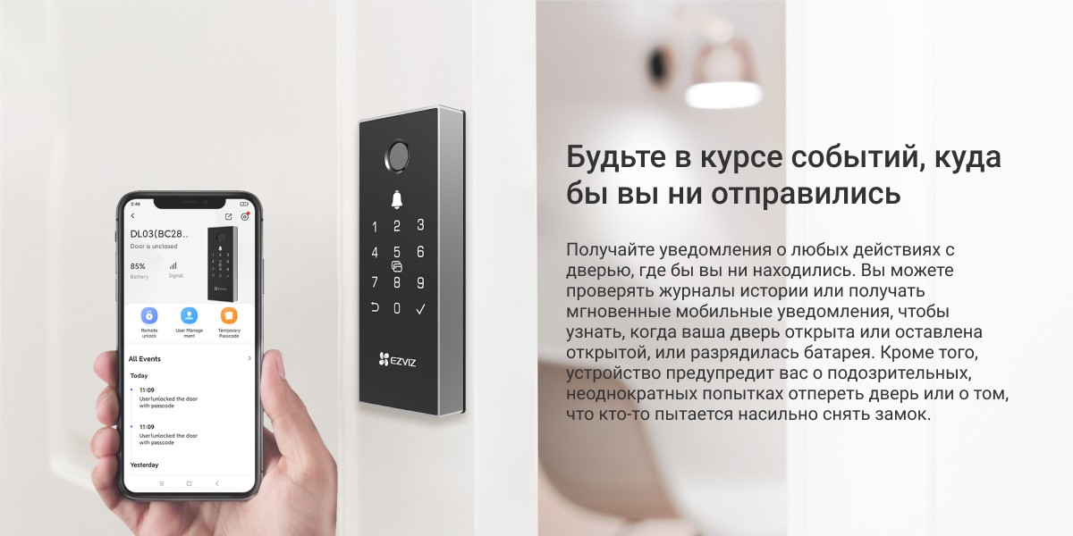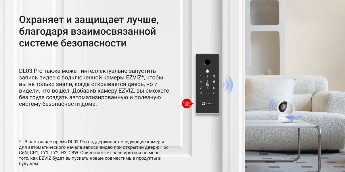 Пора обновить систему доступа в дом с помощью бесключевого доступа и дистанционного отпирания, при этом, возможно, с наименьшими хлопотами, благодаря новейшей модели DL03 Pro от EZVIZ. Не требуя центрального шлюза, DL03 Pro подключается непосредственно к домашнему Wi-Fi для бесперебойной автоматизации и может работать с камерами EZVIZ для усиления видимой защиты. Отпирайте дверь так, как вам удобно - с помощью отпечатков пальцев, ввода пароля, бесконтактной карты или через приложение для смартфона, даже когда вас нет дома.