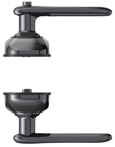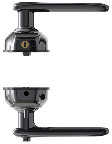 Ручка замка выполнена по технологии «свободная ручка»: она остаётся в нейтральном положении, пока дверь не будет разблокирована. Поднятие ручки вверх фиксирует дверь. После успешной верификации ручка возвращается в свободное состояние, и повторное нажатие не приведёт к открытию. Это предотвращает возможность незаметного проникновения вслед за вами.