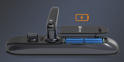 EZVIZ L2S питается от четырёх батареек AA, которых хватает примерно на 10 месяцев работы при средней активности (до 10 открытий в день). О низком заряде замок заранее предупредит звуковым сигналом. Когда заряд снижается, замок заранее предупреждает об этом звуковыми сигналами. При уровне заряда ниже 18% устройство подаёт сигнал о низком заряде. Когда батареи практически разряжены, при каждом нажатии клавиатуры будет звучать предупреждение. Даже после появления уведомления, замок можно будет активировать ещё 50-100 раз, прежде чем питание полностью иссякнет.