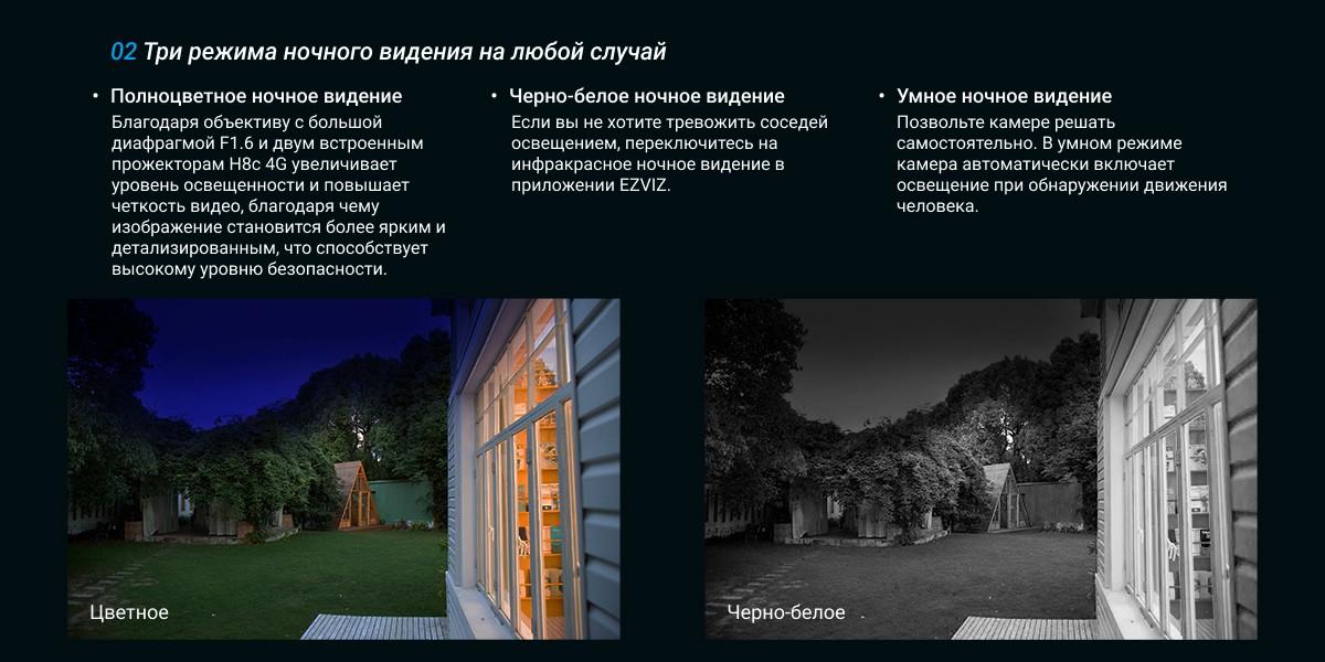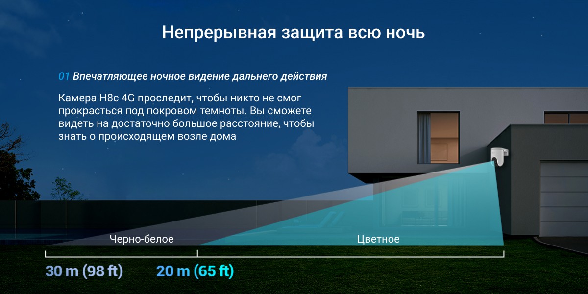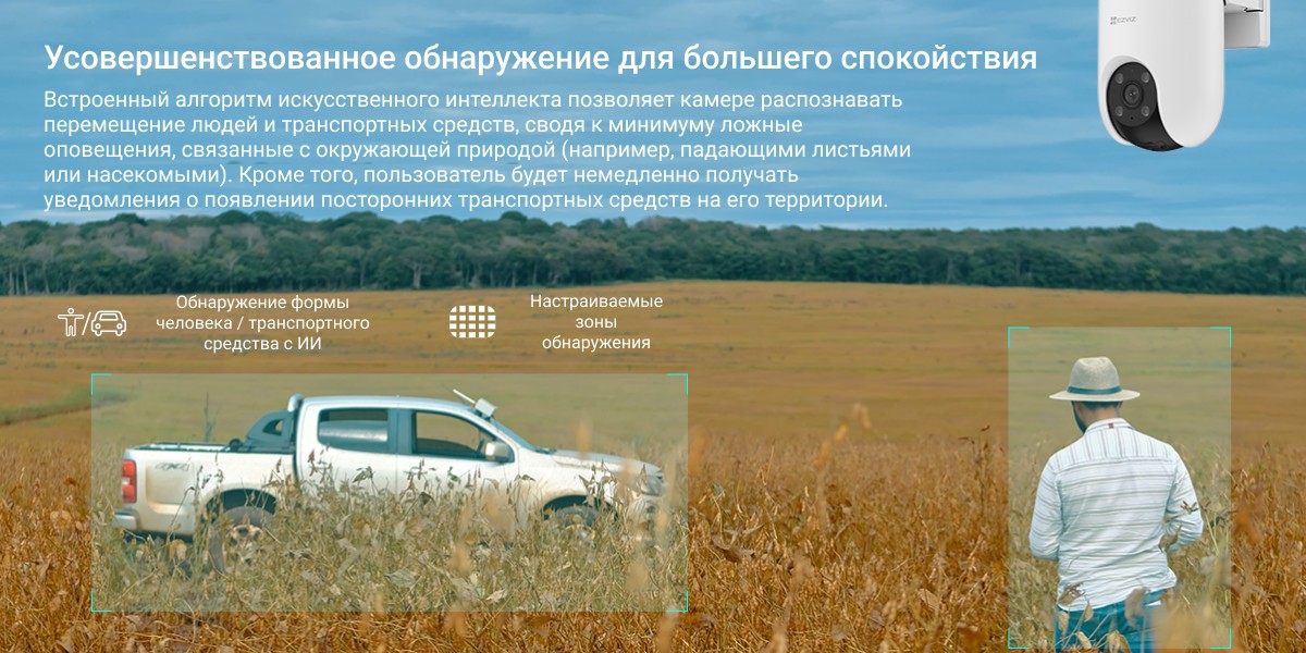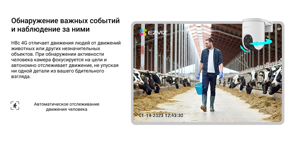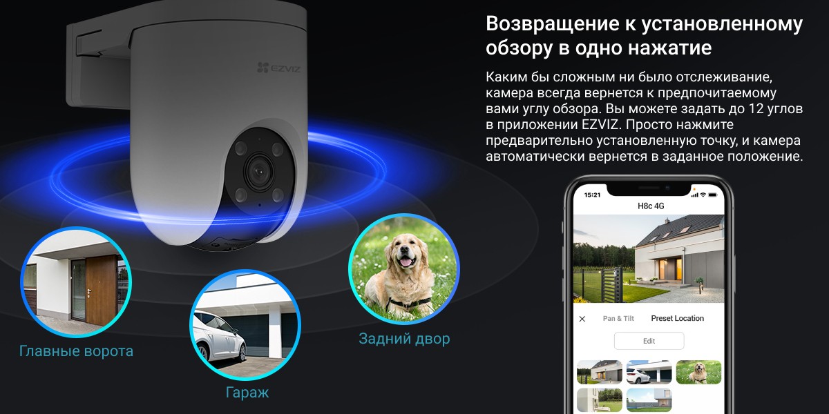 Бесперебойная защита, не требующая Wi-Fi. Представляем революционную камеру EZVIZ H8c 4G, разработанную для зон с ограниченным доступом к Wi-Fi. Это новшество обеспечивает разрешение 2K, 360-градусную защиту, обнаружение людей и транспортных средств на основе искусственного интеллекта и многое другое. Она не только защищает вашу собственность, но и устраняет проблемы с подключением. Благодаря сети 4G камера H8c 4G обеспечивает бесперебойную защиту в местах с ограниченным доступом к Wi-Fi. Испытайте оповещения в режиме реального времени, двустороннюю связь и удаленный доступ через наше удобное приложение с простым процессом установки. Это идеальный выбор для пользователей, ищущих надежные и долгосрочные решения для обеспечения безопасности, независимо от ограничений Wi-Fi.
