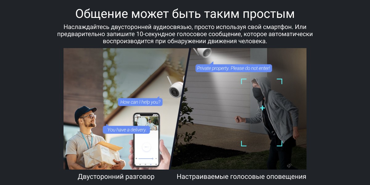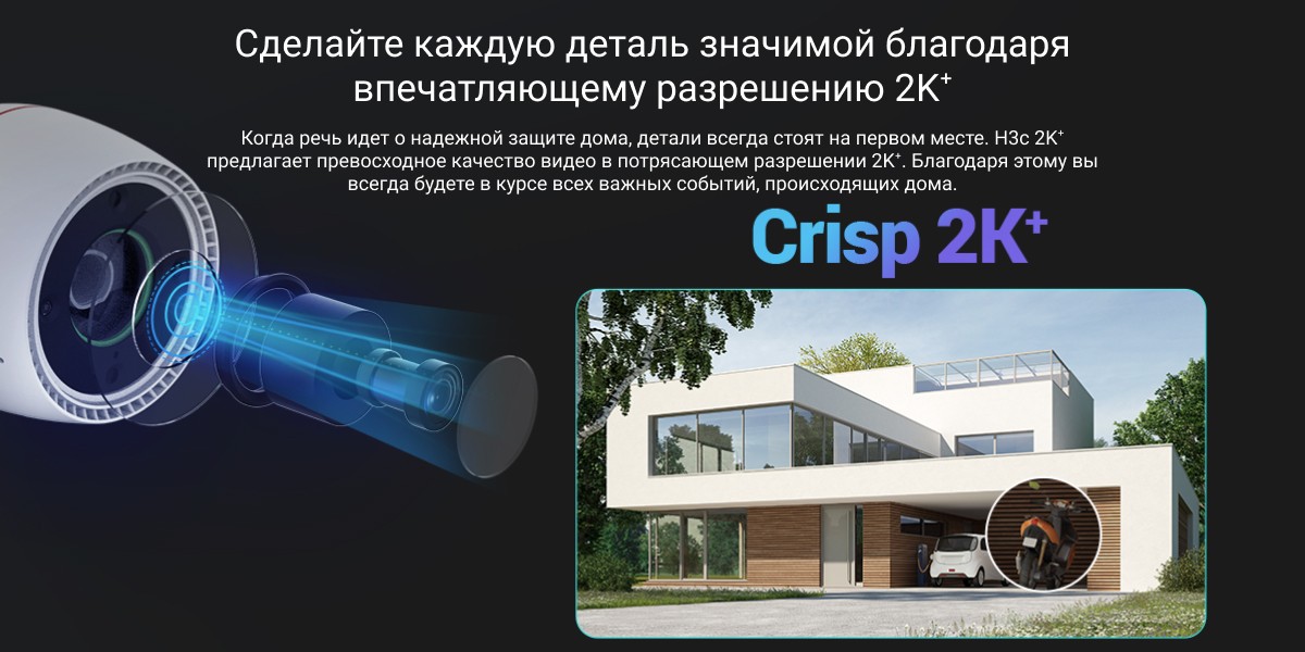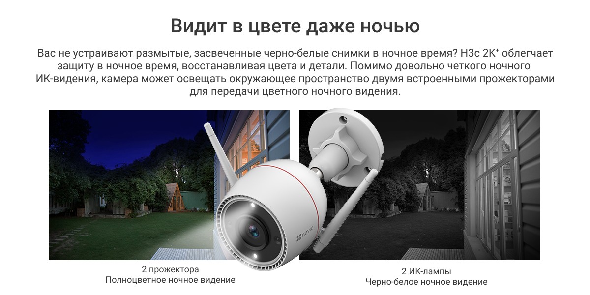 Камера снимает все с четкостью 2K⁺ и видит цвет в ночное время. H3c 2K⁺ добавляет больше интеллектуальности к основной камере, она создана для удовлетворения всех требований наружной безопасности, как днем, так и ночью. В этом устройстве реализованы функции распознавания машущих рук, двустороннего разговора, обнаружения движения человека и другие невероятные, но уникальные функции.