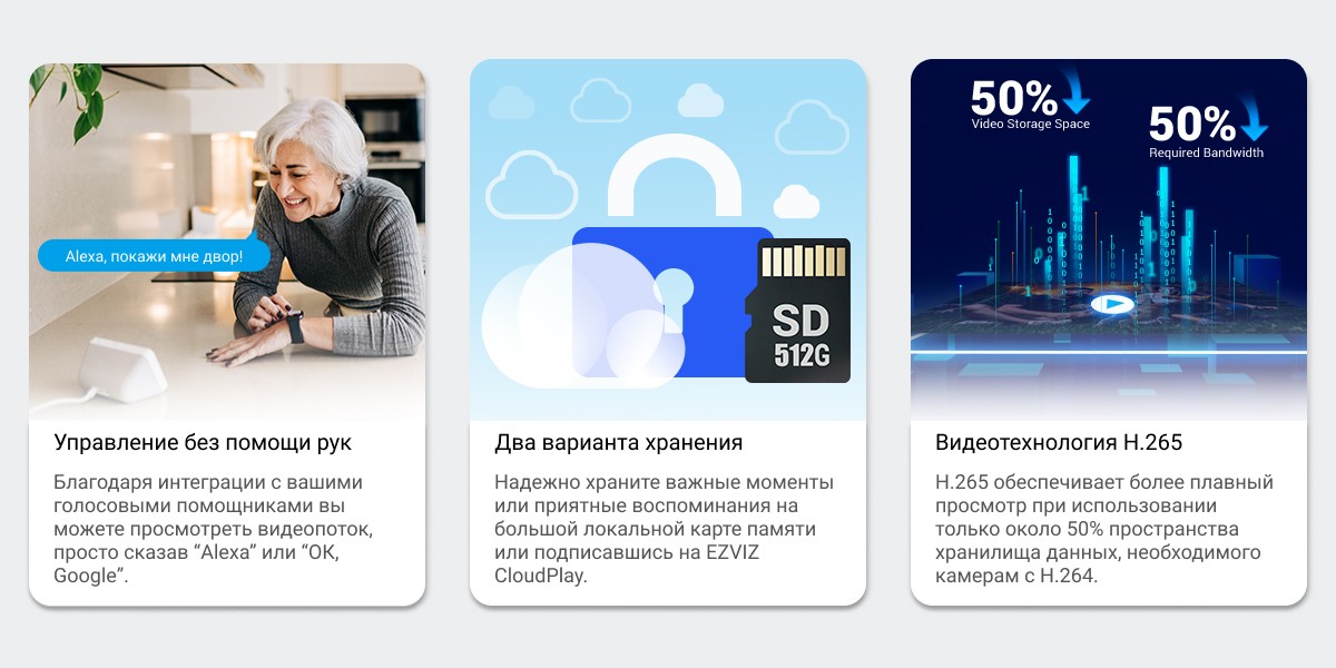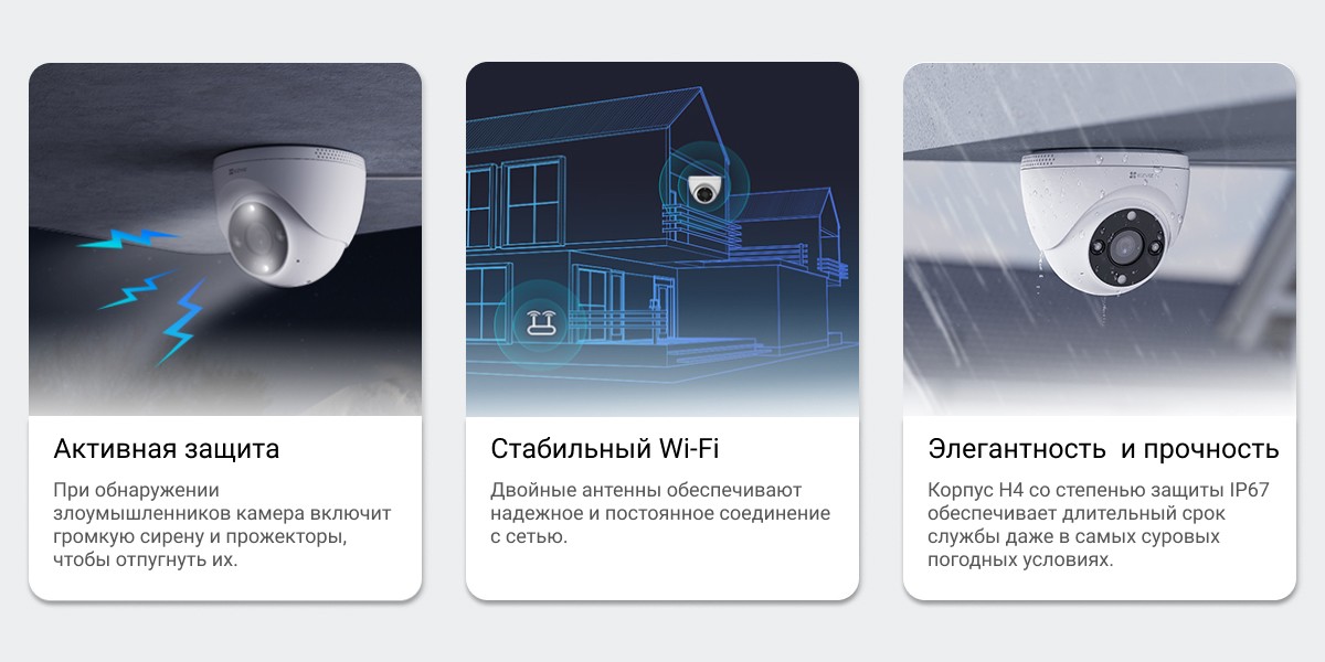 Купольная камера достойно отвечает почти всем требованиям безопасности. Благодаря набору интеллектуальных функций, технически продвинутому разрешению 2K и прочной конструкции она подойдет вам, если вы хотите охватить большие или оживленные пространства. Кроме того, все, что имеет значение, можно легко просматривать и управлять с помощью мобильного приложения EZVIZ.