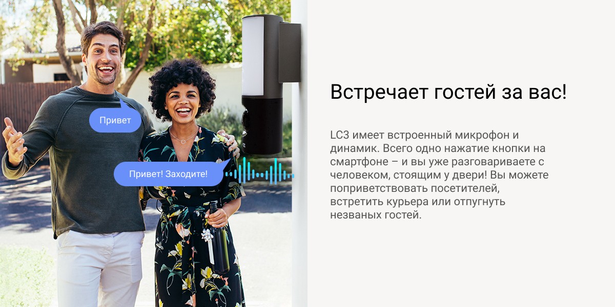 LC3 – это инновационное сочетание прожектора с регулируемой яркостью и функциональной камеры наблюдения с разрешением 4 Мп, которое повышает безопасность вашего жилья на всех уровнях – даже ночью. Замаскированная под стильную настенную лампу, LC3 вписывается в любой интерьер, освещает темные пространства и имеет умные средства дистанционного управления. Безопасность лежит в самой основе этой камеры: LC3 поддерживает функции обнаружения людей на базе искусственного интеллекта, активной защиты и двухсторонней связи для эффективного наблюдения за наружными территориями, такими как террасы, коридоры, внутренние дворы и т. д
