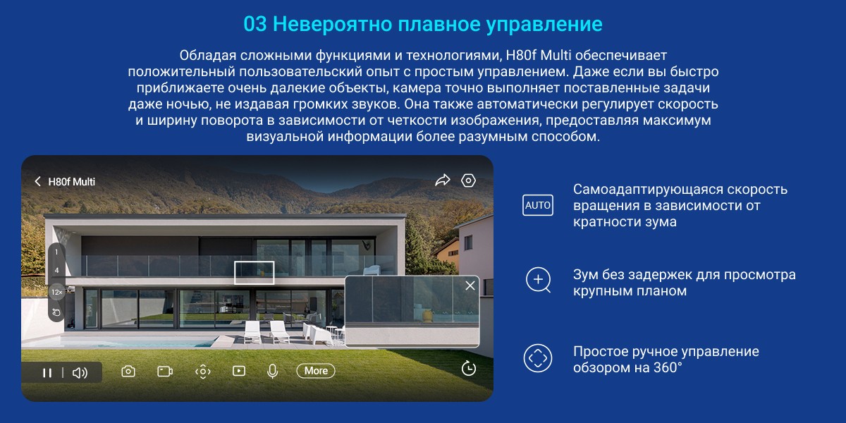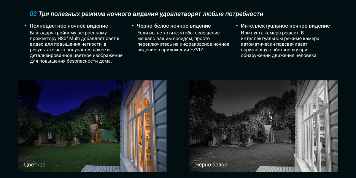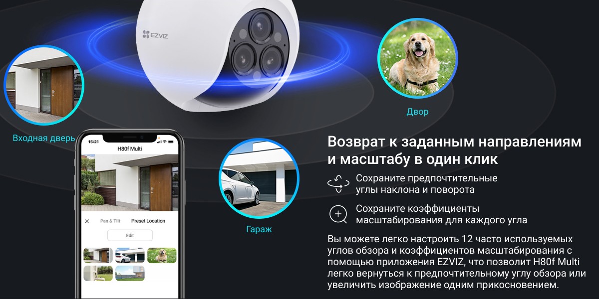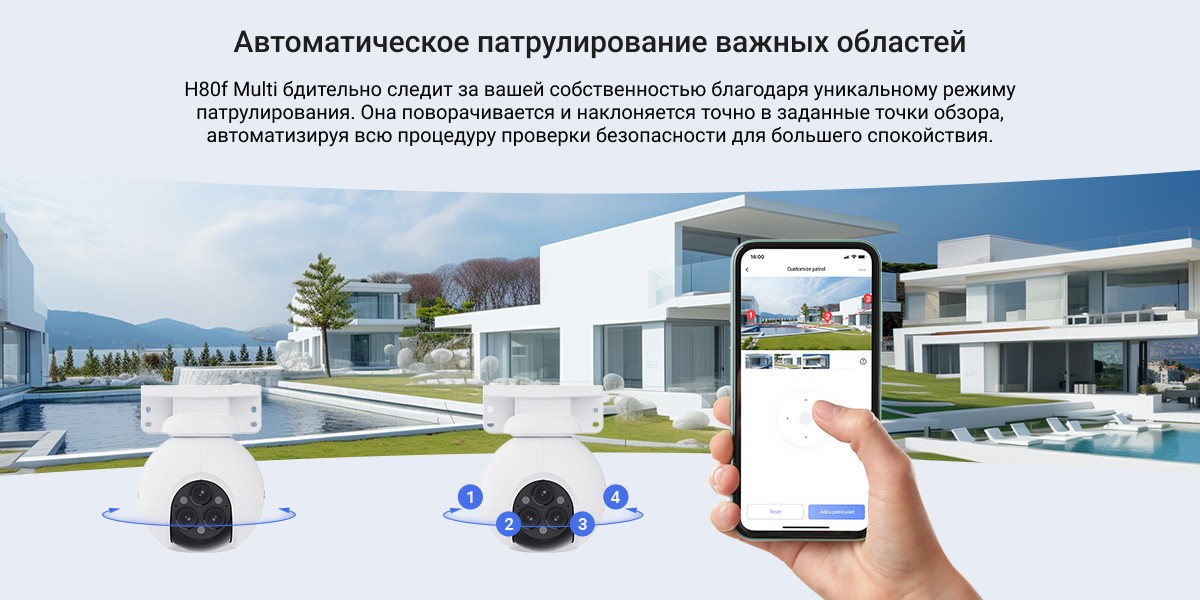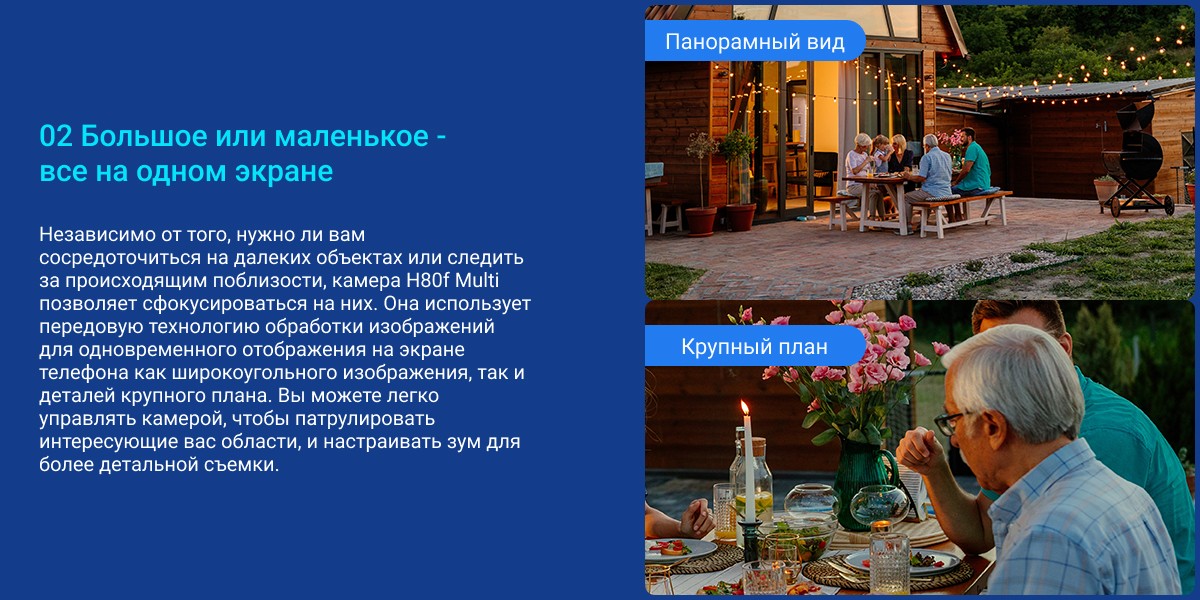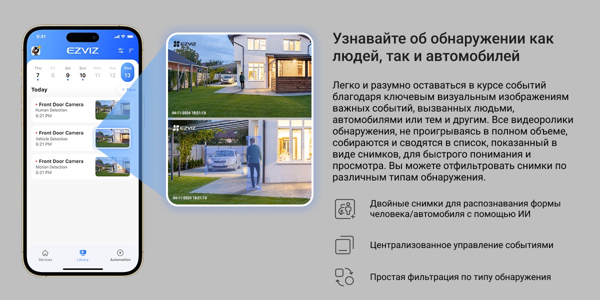 Видит, масштабирует и защищает, как никогда раньше. H80f Multi, первая уличная камера EZVIZ с тремя объективами, предназначена для обеспечения исключительной безопасности на улице с невиданным профессионализмом. Интегрированные возможности трех мощных объективов 2K+ позволяют камере одновременно захватывать широкий обзор и детали крупным планом, поддерживаемые невероятным, не размытым 12-кратным зумом. Встроенный искусственный интеллект может эффективно обнаруживать и фиксировать как людей, так и транспортные средства, записывая происходящее слева направо, а вы получаете более информативные мобильные оповещения, сопровождаемые двойными снимками как посетителя, так и автомобиля.