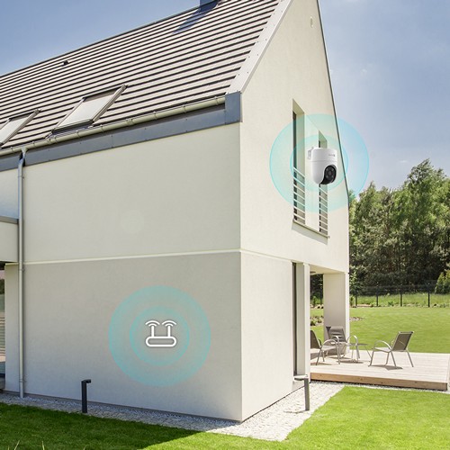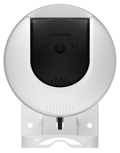 На передней панели камеры расположены объектив, инфракрасный датчик и индикатор состояния. Тут же можно найти светодиодную подсветку, которая позволяет использовать функцию цветного ночного видения. Под объективом находится слот для карты памяти microSD и кнопка сброса. Кроме того, камера оснащена встроенной высокопроизводительной двойной антенной для обеспечения стабильного сетевого соединения. На задней панели расположен динамик.