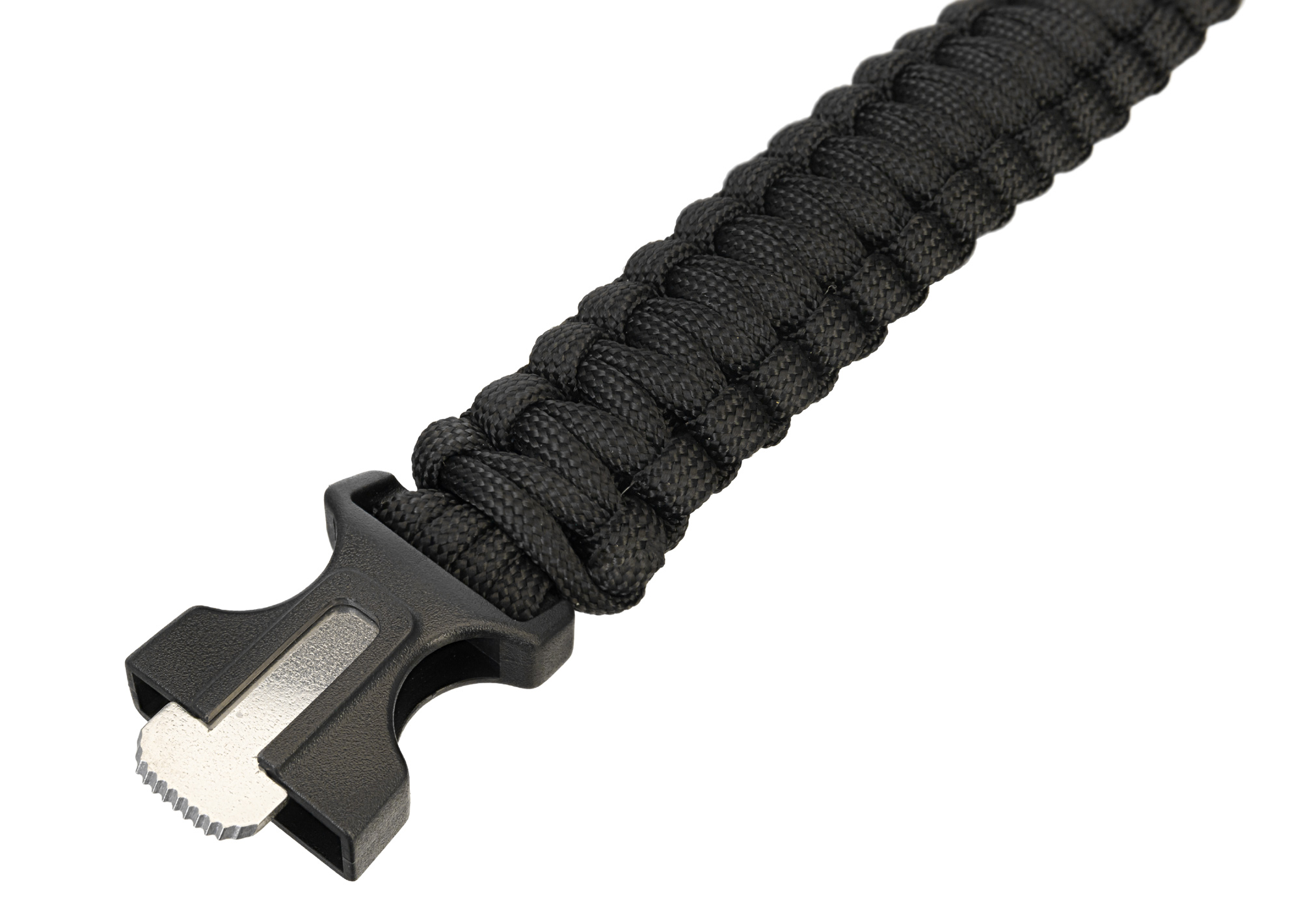 Основной элемент браслета Levenhuk LabZZ FL5 Black – огниво: кремень и кресало, встроенные в застежку. Кресало имеет заточенную кромку и может использоваться как миниатюрный нож. На браслете размещен жидкостный компас с дисковым лимбом для ориентирования по сторонам света и корректировки маршрута в походе, а также свисток для подачи сигналов. Если распустить плетение браслета, в распоряжении туриста окажется 2 метра прочного нейлонового шнура.