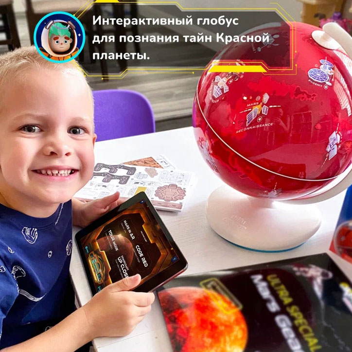 Глобус Shifu Orboot – это интерактивная игрушка, приглашающая в виртуальную космическую экспедицию на Красную планету. Яркий глобус Марса с изображениями космических аппаратов на поверхности познавателен сам по себе, а при сканировании поверхности глобуса в специальном мобильном приложении ребенок вдобавок увидит 3D-модели исследовательских роверов, сможет поиграть в захватывающие развивающие игры и узнать много новой информации о планете.