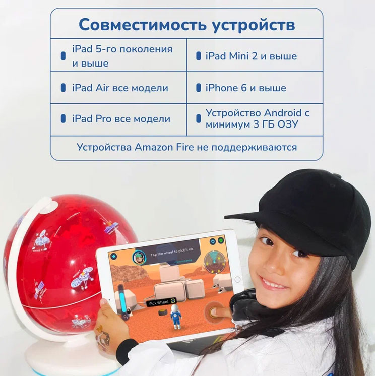Необычный глобус Марса – это отличный подарок, купить который можно не только для юного ценителя современных технологий. Кроме пропуска в мир виртуальных приключений в набор входят две нашивки, которые украсят одежду отважного исследователя, а также тематический объемный пазл с ровером, собирая который, можно отдохнуть от планшета, тренируя мелкую моторику и пространственное мышление.