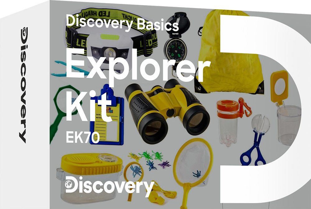 Набор Discovery Basics EK70 создан специально для неутомимого исследователя, который стремится узнать об окружающем мире как можно больше и которому для этого требуются самые разные инструменты. Здесь есть оптическая техника, приборы для ориентирования, приспособления для биологических исследований и даже блокнот для записей о самых необычных находках. Чтобы с набором было удобно путешествовать, он дополнен сумкой-рюкзаком, в которую легко помещаются все предметы.