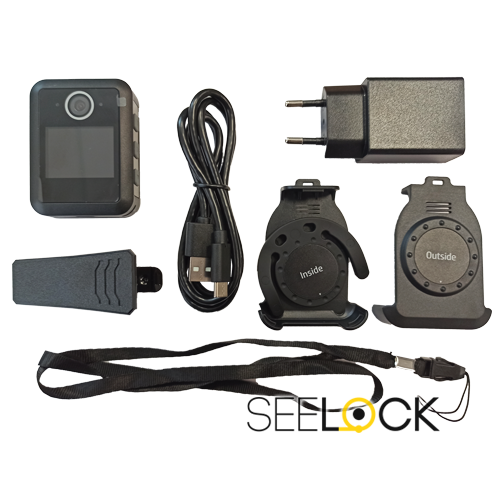 Пыле- и влагостойкий корпус видеорегистратора SEELOCK Inspector С2 позволяет использовать его при любой погоде. Видеорегистратор очень легкий, практически не чувствуется во время использования. В комплект поставки включены 3 штатных крепления: зажим-крокодил, магнитный держатель и ланъярд (доступно не во всех комплектациях).