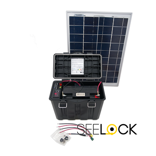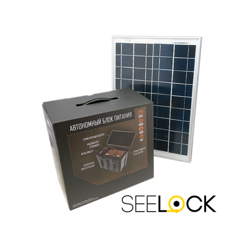 - Автономный блок питания SEELOCK АБП с солнечной батареей 50Вт, кронштейном для крепления на дерево и кабелем 5м;