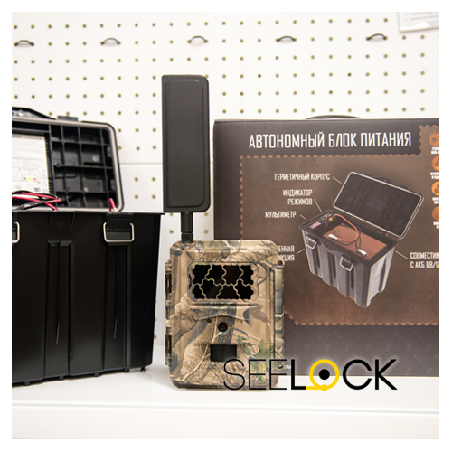 - Автономный блок питания SEELOCK АБП с солнечной батареей 5Вт, кронштейном для крепления на дерево и кабелем 5м;