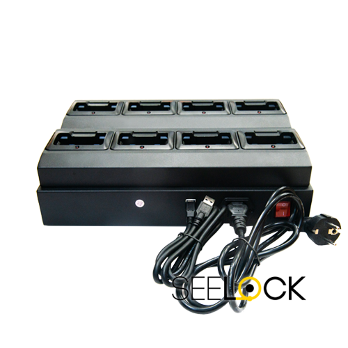 Одно из самых простых решений для зарядки до восьми видеорегистраторов в автоматическом режиме. Станция зарядки укомплектована интерфейсом USB 2.0, что позволяет при наличии компьютера с программным обеспечением производить загрузку и архивацию данных. Загрузка может осуществляться как в ручном режиме с помощью программ, поставляемых в комплекте с полицейскими видеорегистраторами SEELOCK, так и в автоматическом режиме при наличии специализированного программного обеспечения. Данная док-станция может работать как расширение большого терминала в случаях, когда количества портов в большой док-станции не достаточно для работы