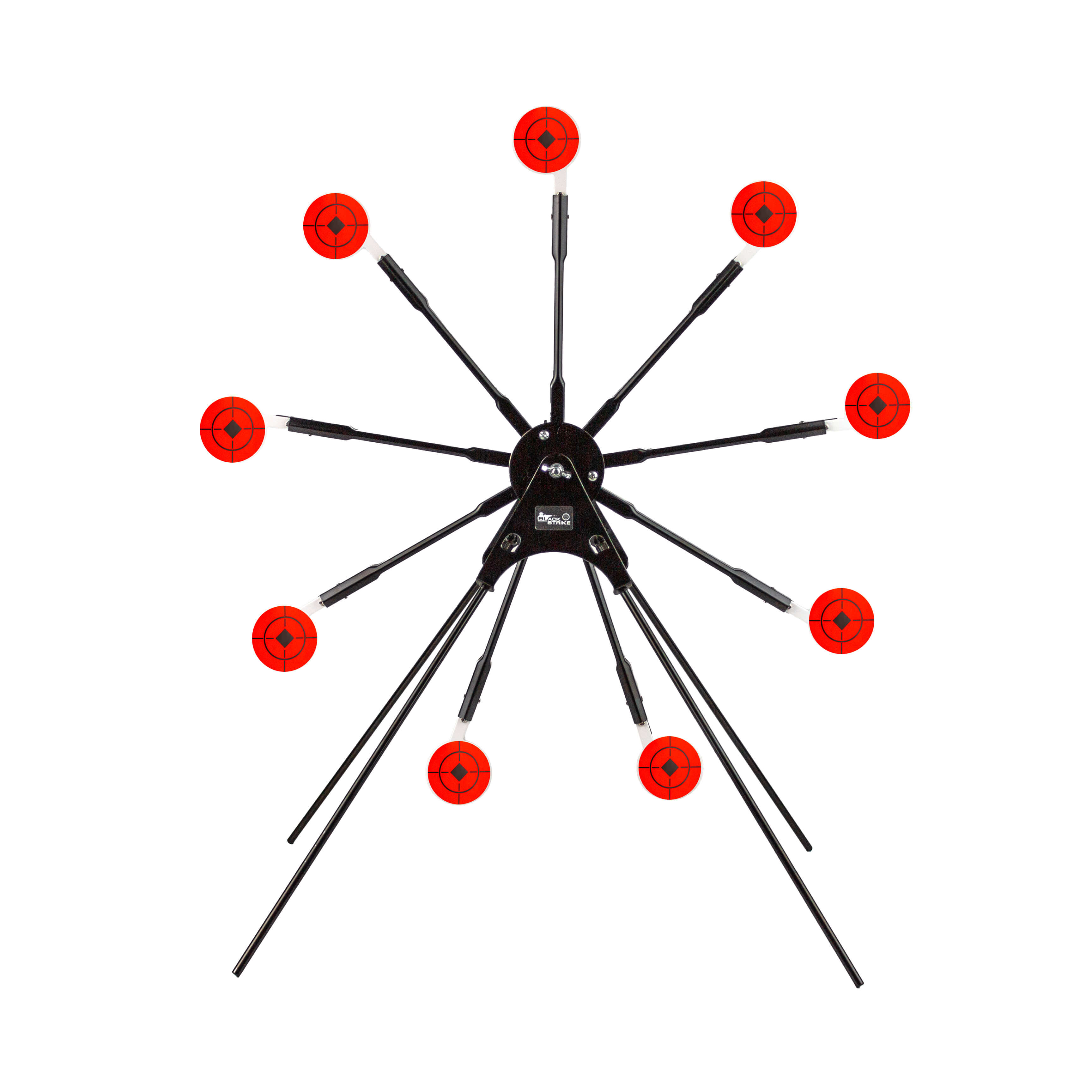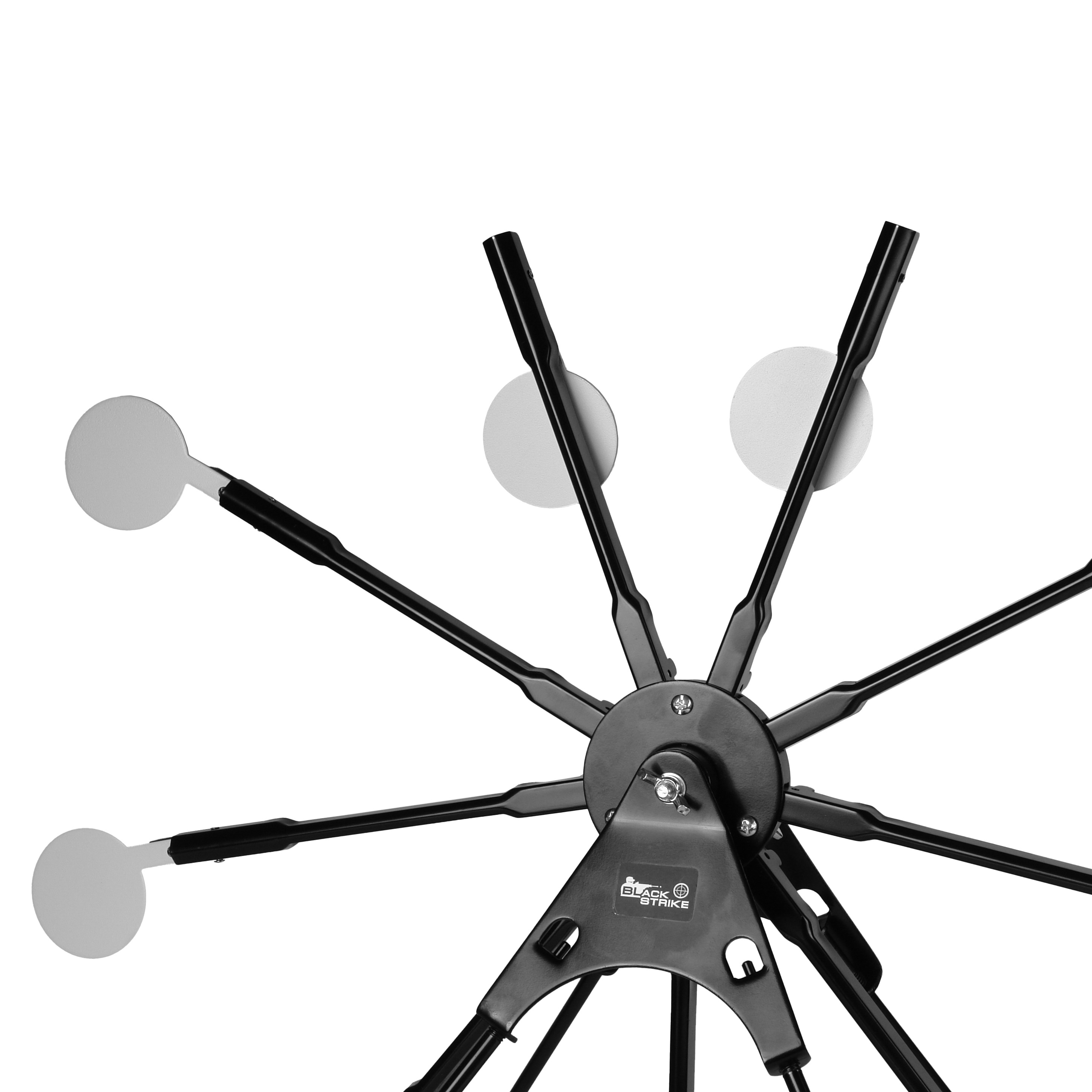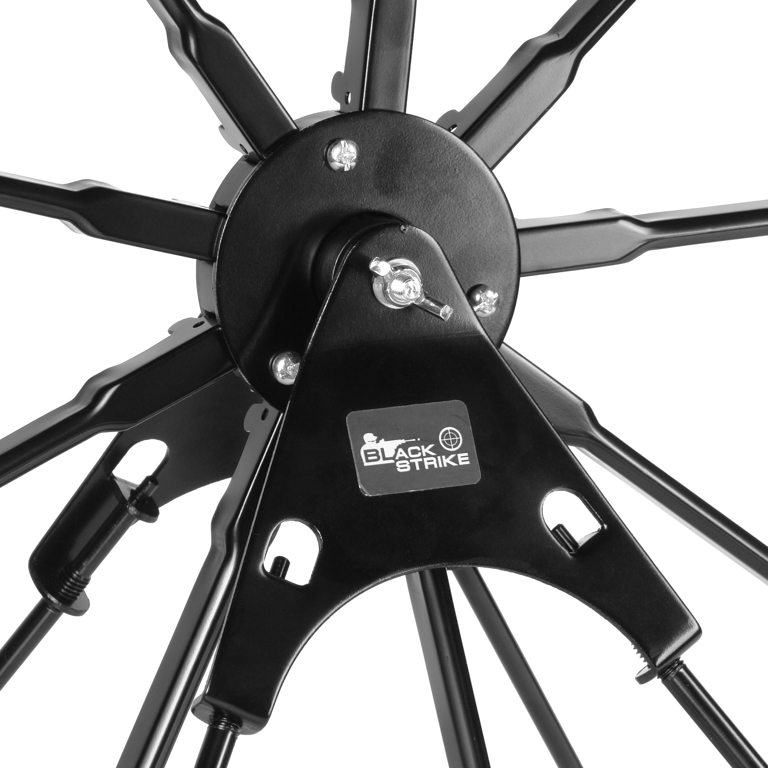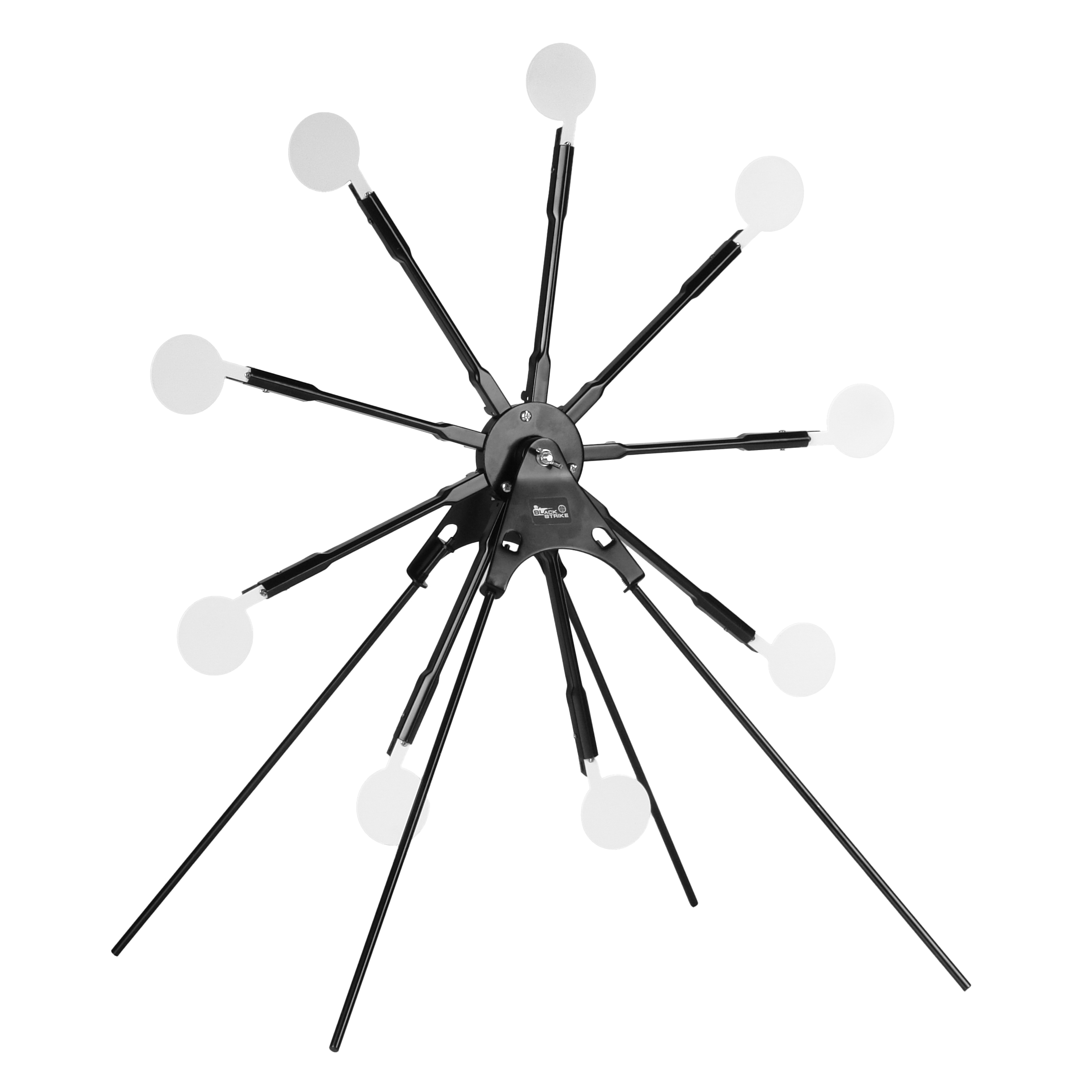 BLACK STRIKE AT 09 – разборная вращающаяся мишень «звезда» на треноге с 9 стальными падающими мишенями для развлекательной и тренировочной стрельбы из пневматического оружия.