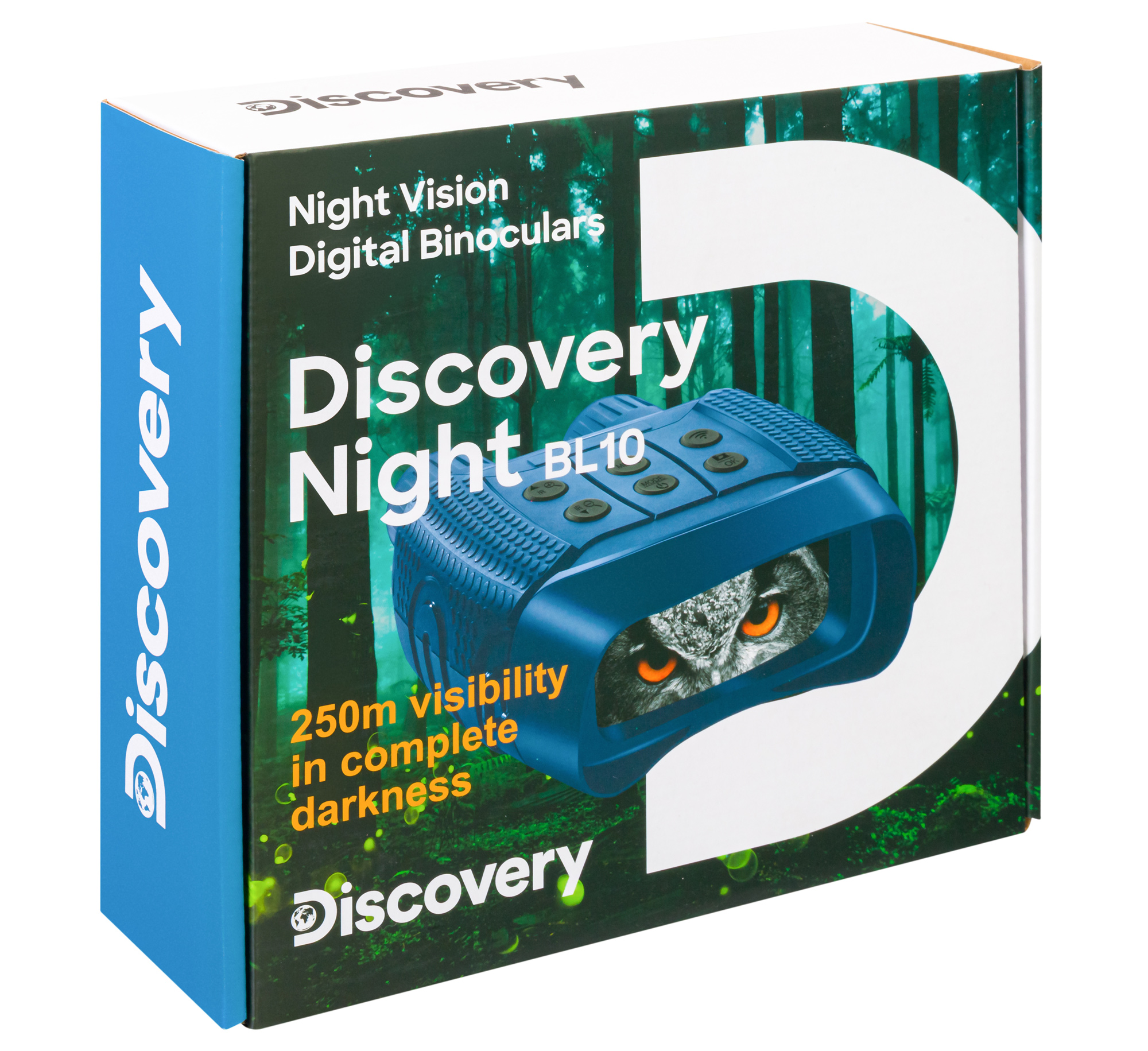 Discovery Night BL10 – это бинокль ночного видения с цифровым преобразователем, который не боится засветки. Также он снабжен рекордером для записи фото и видео и дополнен небольшим настольным штативом для более удобного и надежного размещения в полевых условиях. Этот ПНВ поможет на ночной охоте, позволит обеспечить безопасность лагеря в походе, станет отличным выбором для разведывания незнакомых территорий. Так как Discovery Night BL10 можно использовать не только ночью, но и днем как обычный бинокль, он способен заменить собой сразу два оптических прибора!
