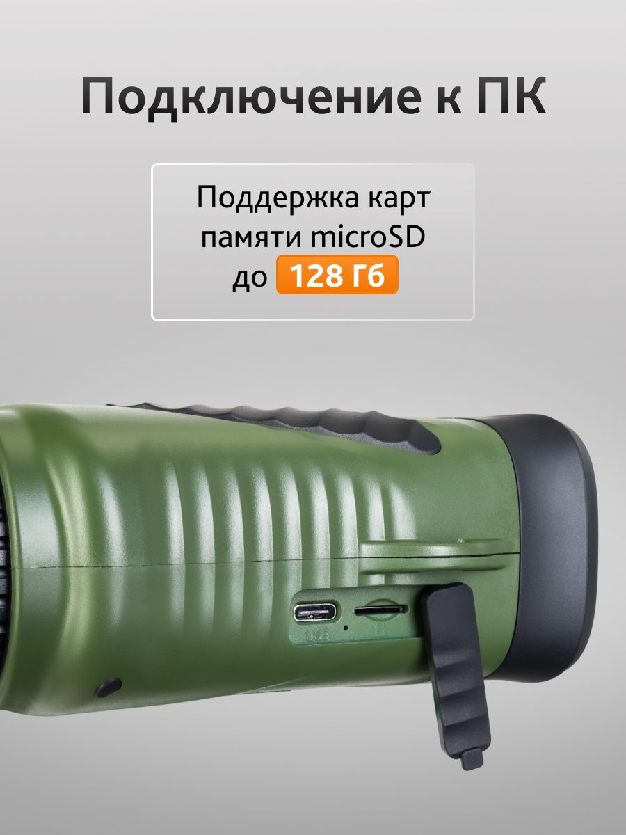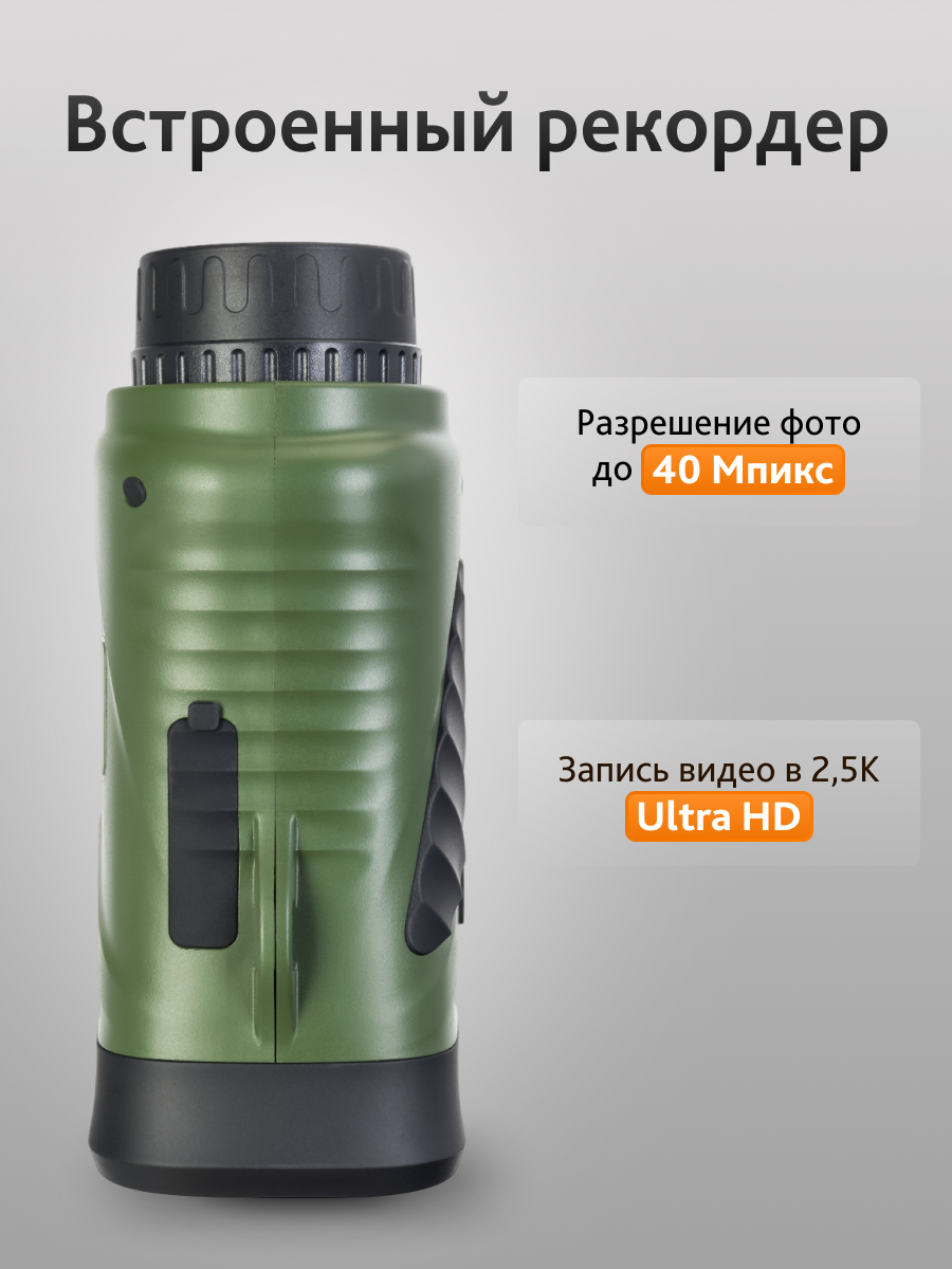 Съемка в высоком разрешении и большой объем памяти Бинокль ночного видения Levenhuk Atom Digital DNB200 оборудован встроенным видеорекордером. Он дает возможность снимать в высоком качестве: до 40M для фото и 2,5К для видео. Материалы сохраняются на карту памяти. Стоит заметить, что бинокль поддерживает карты до 128 ГБ – этого объема хватит надолго. Вести долгие наблюдения и съемку особенно удобно со штатива – это помогает избежать дрожания картинки. В конструкции бинокля предусмотрено стандартное гнездо для установки.