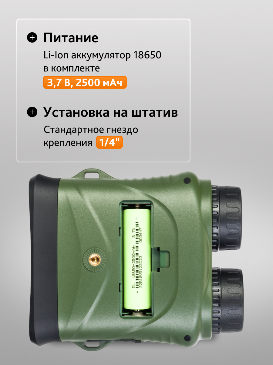 | Источник питания | съемный литий-ионный аккумулятор 18650, 2500 мАч | |