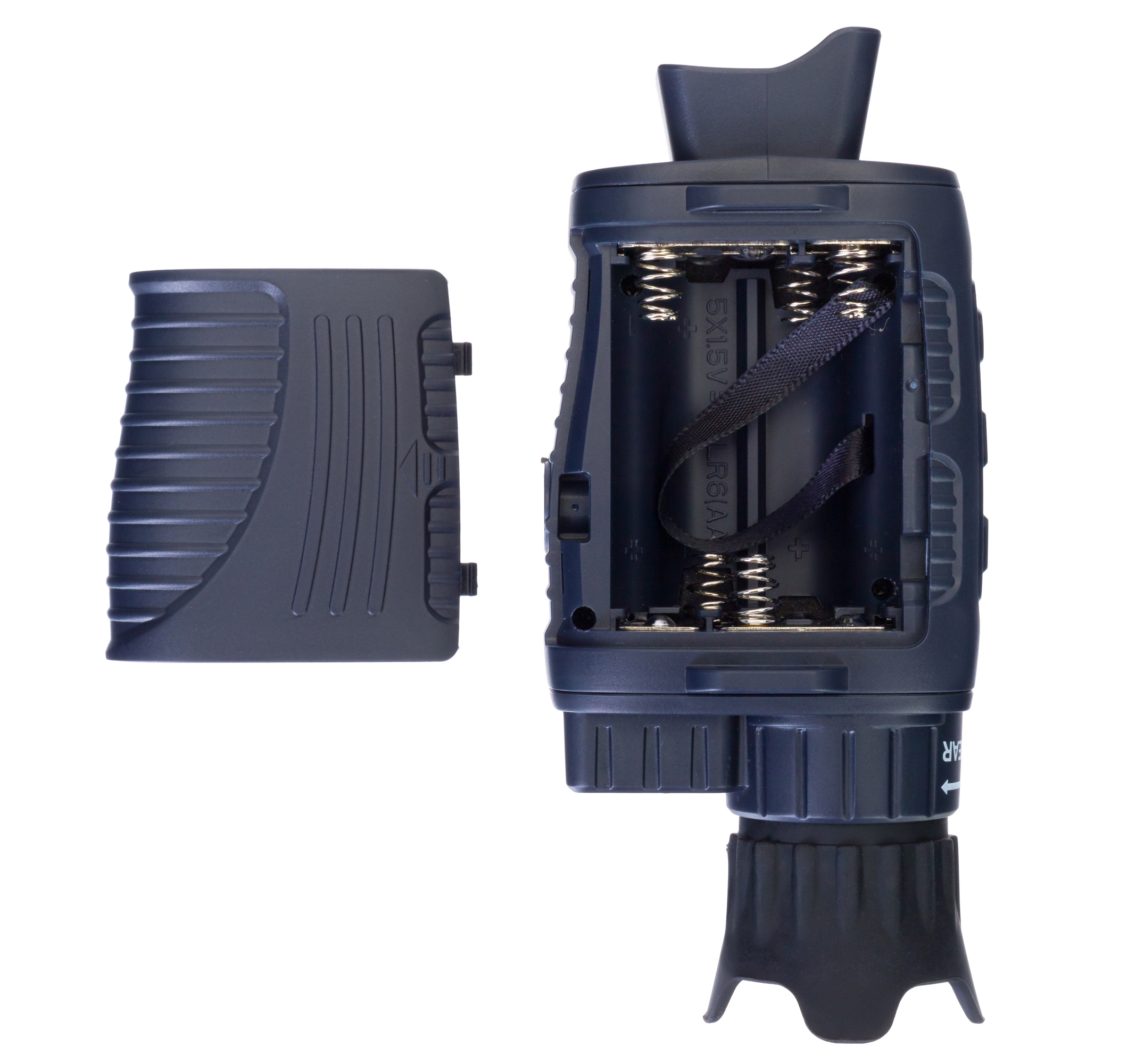 Оптико-цифровая начинка помещена во влагозащищенный корпус эргономичной конструкции. Прибор удобно и надежно лежит в руке, все кнопки управления сразу же оказываются под пальцами. Для питания используются стандартные батарейки, одного заряда которых хватает на 4–10 часов непрерывной работы. Общее время работы на одном заряде зависит от того, насколько интенсивно используется подсветка. Прибор идет в комплекте с настольным штативом, который поможет в проведении длительных стационарных наблюдений и позволит стабилизовать картинку при съемке видео.