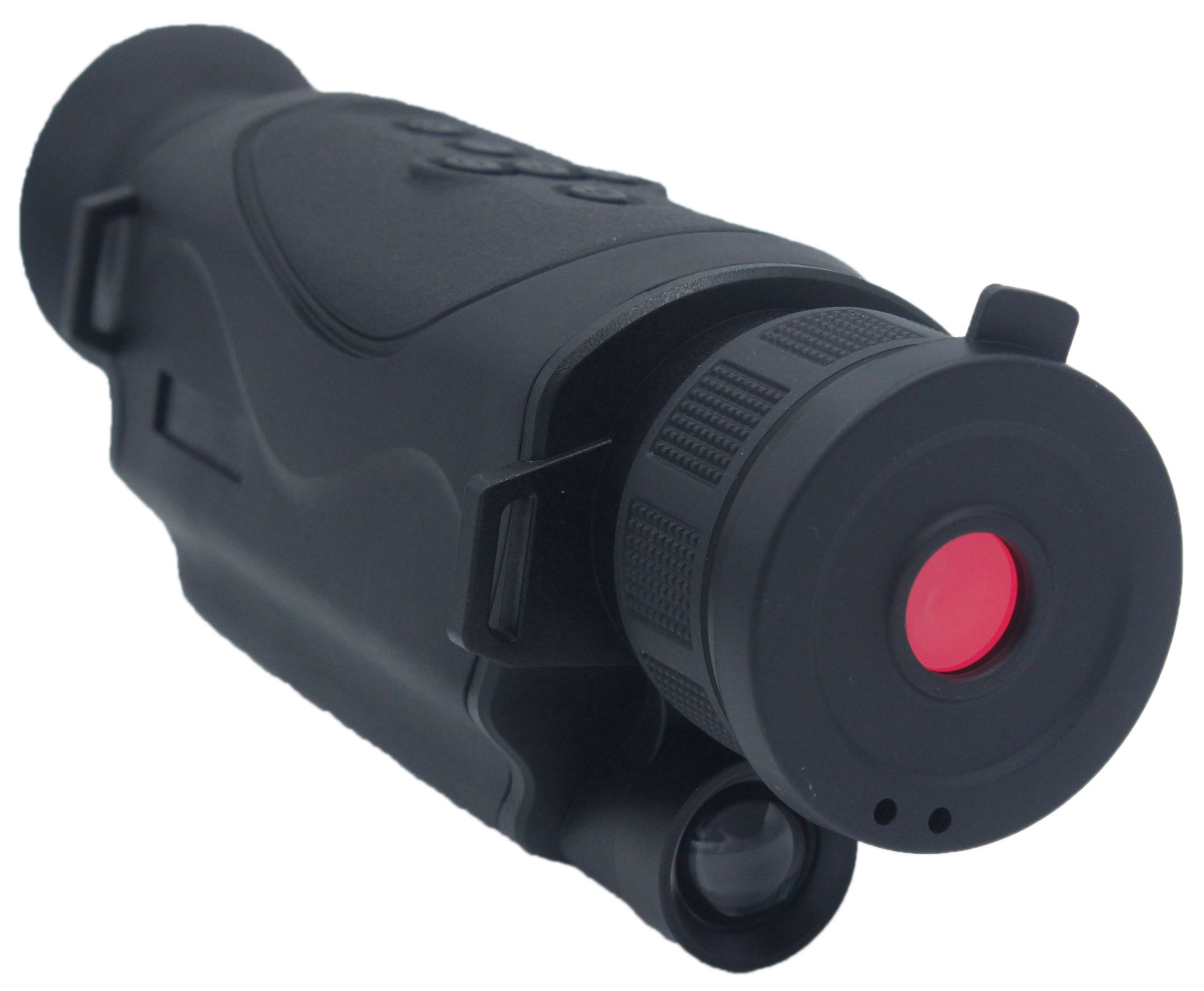 Диаметр объектива модели – самый большой в линейке: он составляет 43 миллиметра. Это положительно сказывается на светопропускании оптической системы. За формирование изображения на дисплее отвечает высокоэффективная светочувствительная матрица CCD. Есть диоптрийная подстройка, колесо фокусировки расположено на объективе, а кнопки управления – на верхней панели, прямо под пальцами. Доступно 6 уровней яркости инфракрасного осветителя. Работает прибор от сменного аккумулятора, для экономии заряда предусмотрены опции автоотключения и дисплея, и самого монокуляра.