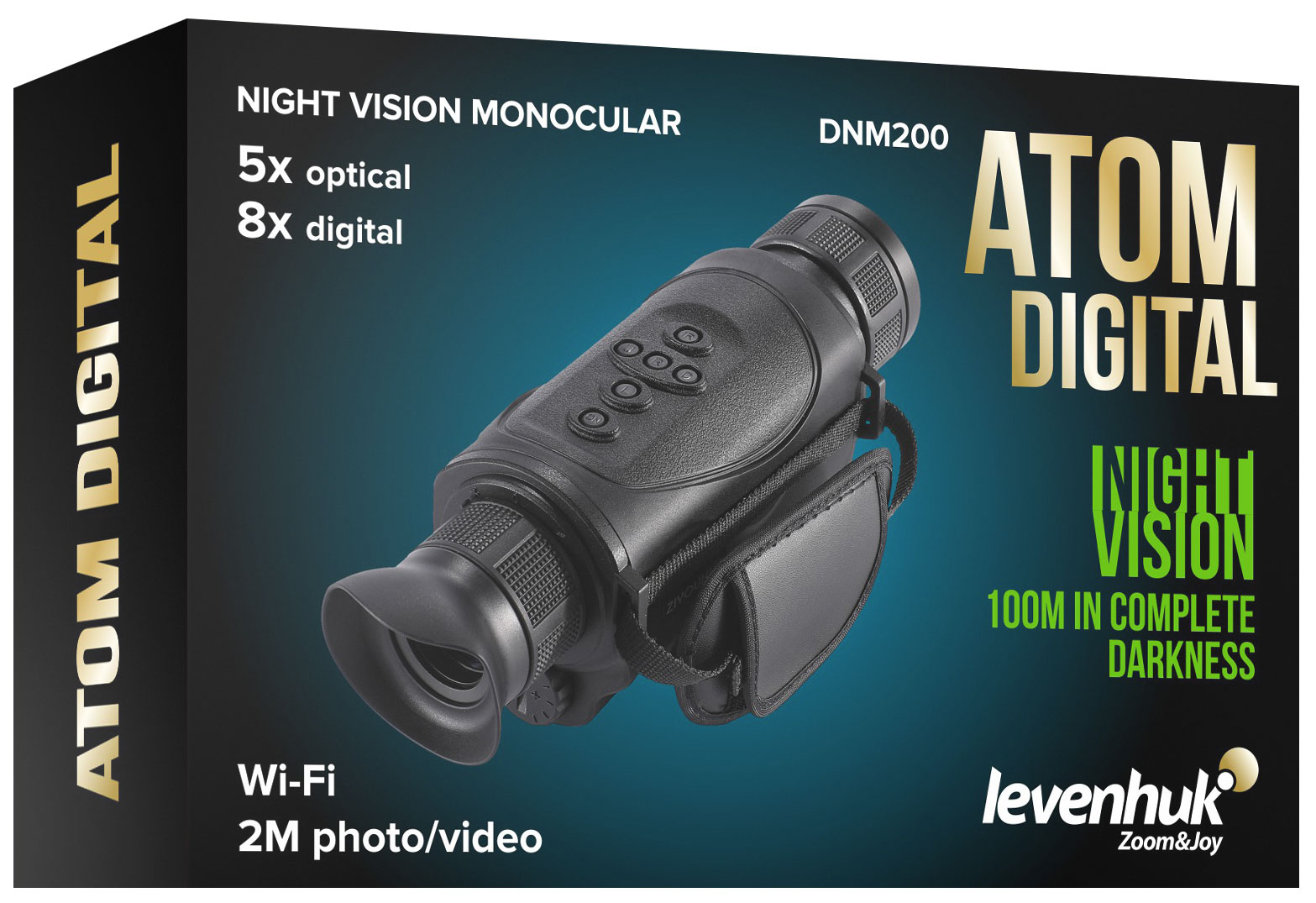 Levenhuk Atom Digital DNM200 – это прибор ночного видения в удобном формате монокуляра, который можно удерживать одной рукой. Портативный прибор понравится охотникам, любителям походов и экстрима, а также тем, кто ведет наблюдения по долгу службы: охранникам, спасателям, сотрудникам патрульных подразделений. Оптика монокуляра формирует изображение высокого качества на увеличении 5 крат, цифровой зум позволяет приблизить его в диапазоне от 1 до 8 крат. Картинка выводится на встроенный цветной дисплей и может быть записана в фото- или видеоформате.