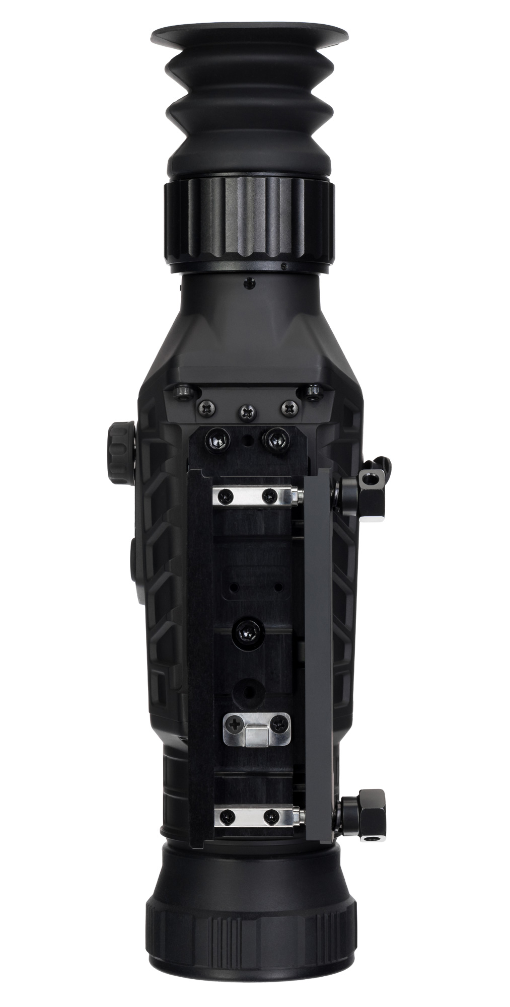 Оптическое увеличение составляет 3,3 крата, а для еще большего приближения можно использовать цифровой зум (2 или 4 крата). Из полезных функций доступны отслеживание горячих точек, режим «картинка в картинке» и выбор цветовой палитры. Также можно регулировать контрастность и яркость. Все вместе позволяет настроить изображение оптимальным образом вне зависимости от условий наблюдений и особенностей зрения. Цифровой монокуляр с крепежом установки для прицела также позволяет выбирать тип прицельной сетки, что дополнительно повышает удобство использования, – всего доступно 10 вариантов. Цвет сетки можно изменять. Еще одна особенность – в корпусе есть разъем LEMO: он используется для подключения внешних устройств, например экрана, на который можно вывести картинку с прицела.