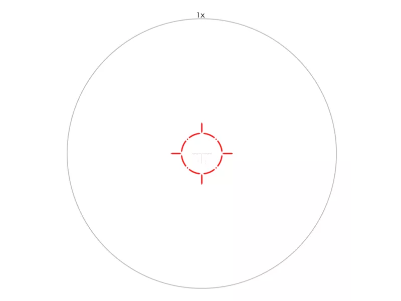 Сетка AM1102 расположена в первой фокальной плоскости и представляет собой прерывистый круг с засечками под углом 90°, внутри которого расположена T — образная разметка для ввода поправок и прицельная марка. Окружность дает возможность быстро захватить цель и выстрелить навскидку при стандартном оптическом увеличении.