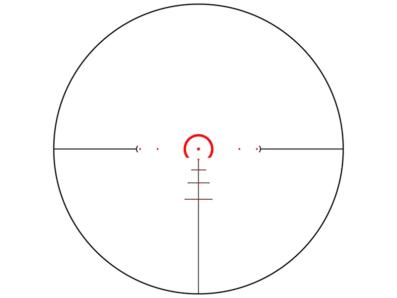 Прицельная сетка AM5-4X Разработанная для загонной охоты и точной стрельбы на ближние и средние дистанции прицельная сетка AM5-4x расположена во второй фокальной плоскости. Прицельная марка помогает захватить цель, даже при высокой скорости передвижения, и вести ее до момента выстрела. Стрелок, ориентируясь по маркировке, легко и быстро корректирует свою стрельбу в зависимости от ветра и расстояния до цели.