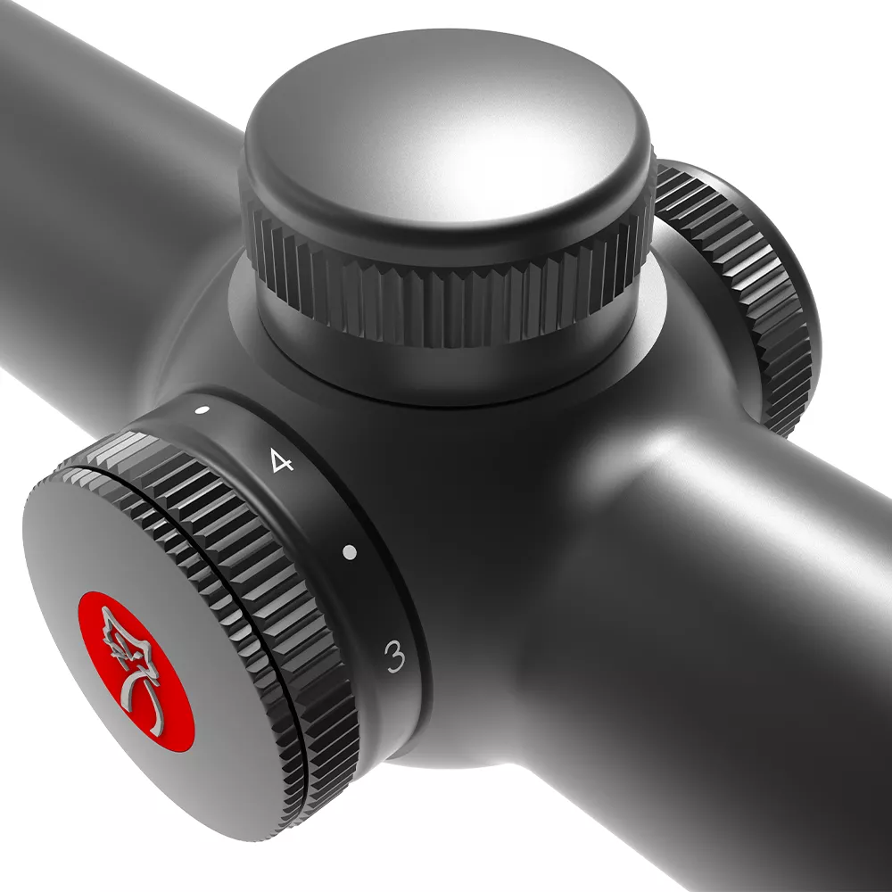 Барабаны ввода поправок с резьбовыми крышками надежно фиксируют настройки положения сетки, исключая даже малейший сбой как при динамичной стрельбе, так и при случайном контакте прицела с другими поверхностями.