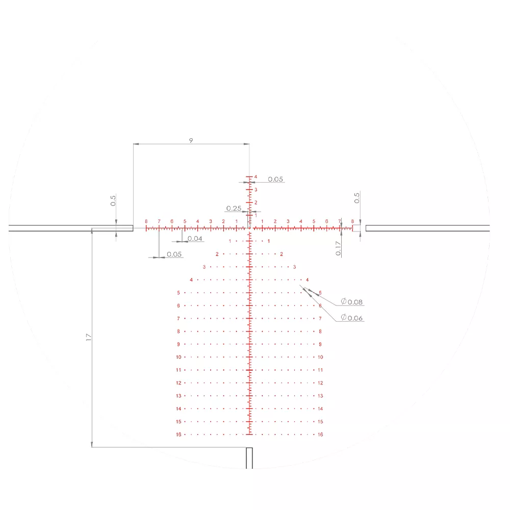 Разработанная специально для сверхточной стрельбы в разнообразных условиях прицельная марка расположена в первой фокальной плоскости. Детализированная разметка в сочетании позволят легко определять расстояние до цели, а «ёлочка» поможет компенсировать падение пули. Подсветка с 6 режимами яркости красного цвета обеспечит вам хорошее прицеливание даже в условиях низкой освещённости, а функция автоматического отключения после 6 часов бездействия сохранит долгосрочность батареи.