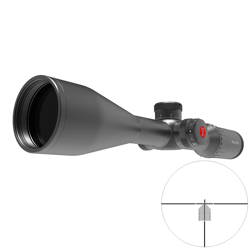 Оптический прицел MewLite 6-24x56 FFP SFIR продуман до мельчайших деталей, чтобы эксплуатация была максимально понятной и доступной не только профессиональным охотником, но и любителям спортивной стрельбы. Удаление выходного зрачка (100мм) обеспечивает глазам комфортное прицеливание без дополнительных комплектующих,а прицельная сетка (MS-MIL-001 FFP) позволяет получить более широкий угол обзора с чистым изображением даже мелких объектов на удаленной дистанции.