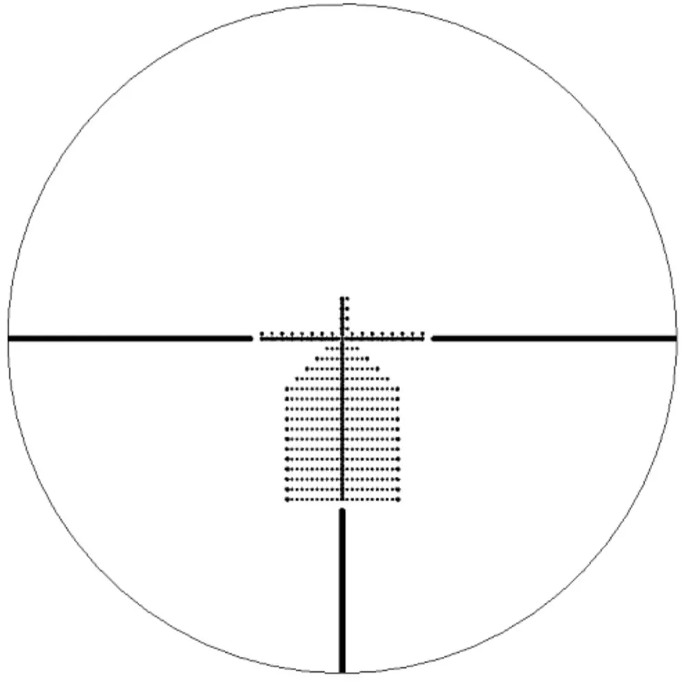 Прицельная сетка находится в первой фокальной плоскости. Зная размеры сетки и размер мишени можно определять расстояние до цели. Есть 6 уровней подсветки, которые позволяют настроить яркость с учетом естественного освещения. Элементом питания служит литиевая батарейка CR2032. На самом низком из возможных уровней яркости она обеспечивает бесперебойную работу подсветки на протяжении десятков тысяч часов.