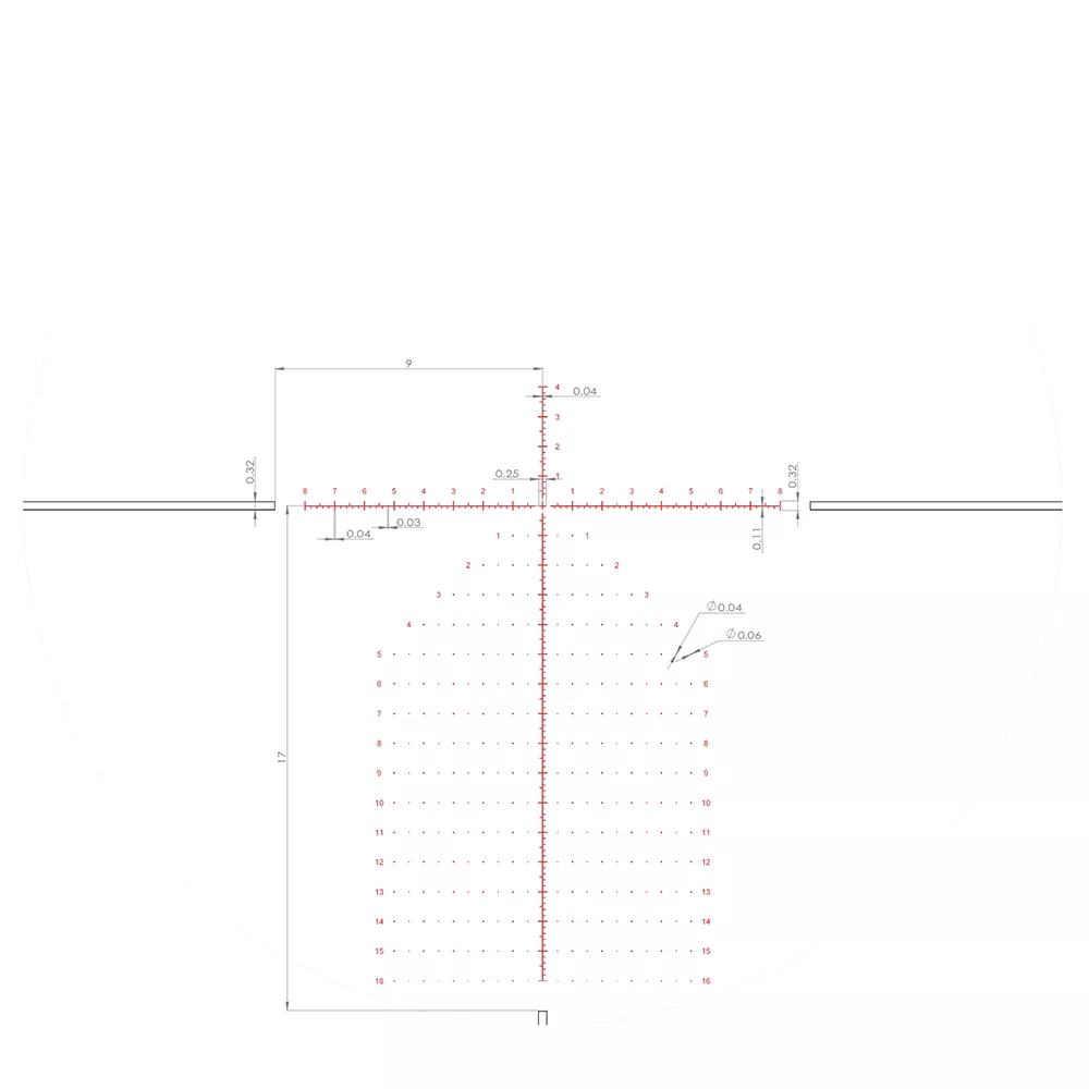Точный механизм выверки прицельной марки обеспечивает возможность выполнять вертикальные и горизонтальные поправки в диапазоне 16 MRAD. Это позволяет учесть при совершении выстрела направление ветра, перепады высоти другие географические и климатические особенности местности, в которой вы находитесь. Каждый клик равен 0,1 MRAD. Необходимые корректировки можно вносить на слух, визуального контакта не требуется, так как отсчет легко выполняется по числу произведенных щелчков.
