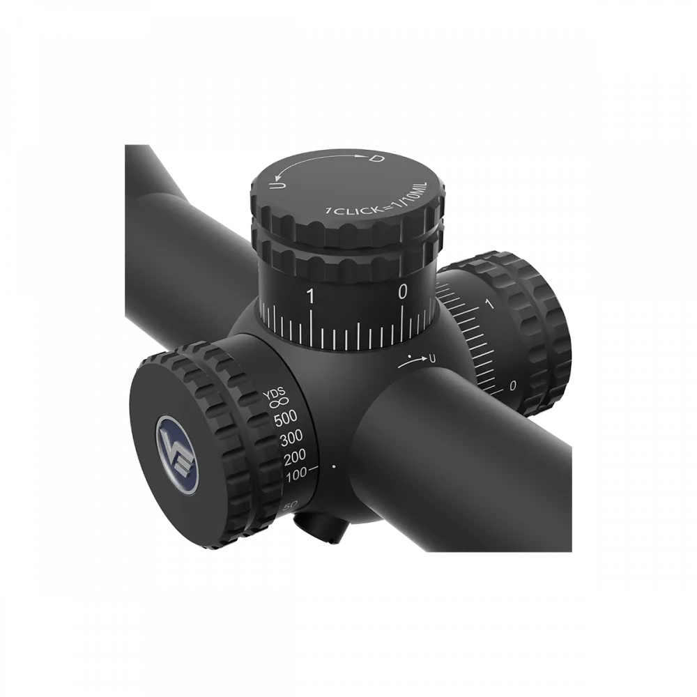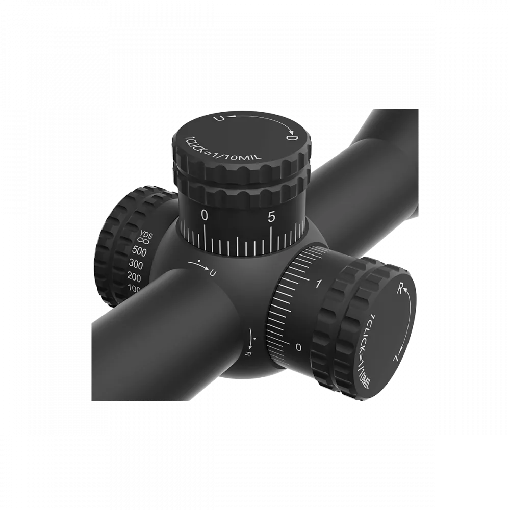 Интервал регулировки точки прицеливания составляет 25 MIL по вертикальной и горизонтальной осям. В сочетании с ценой клика 1/10 MIL это гарантирует высокую точность пристрелки и результативную стрельбу.